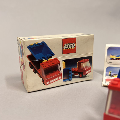 Starožitná stavebnici s názvem LEGO C 612 Dump Truck - Sklápěčka, klasický model z řady Legoland. V původní papírové krabičce s návodem.