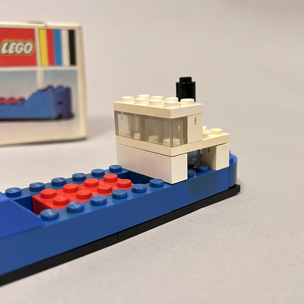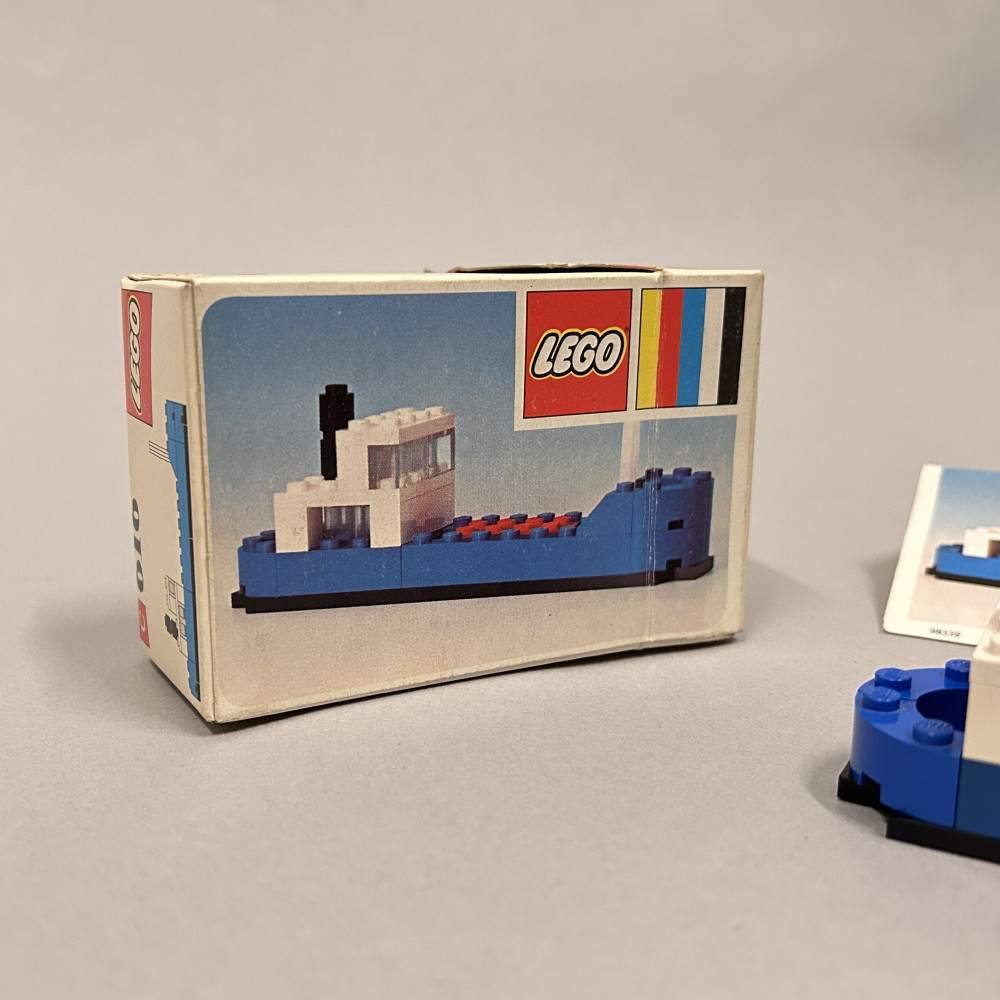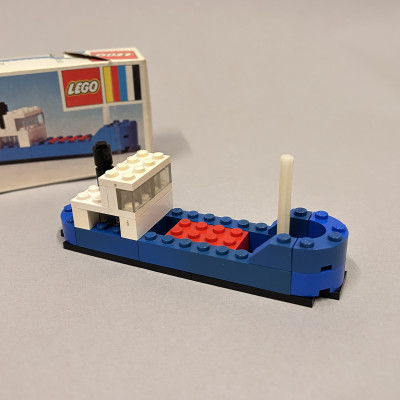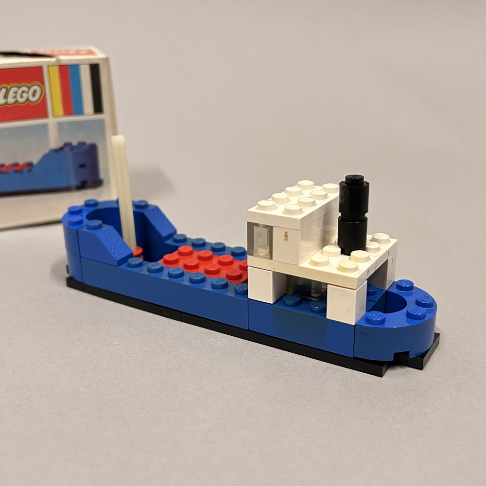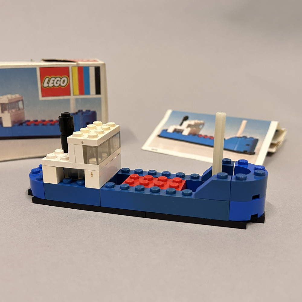 Starožitná stavebnici LEGO s názvem 616 Cargo Ship (Nákladní loď). Tato sada, která je součástí tématu LEGOLAND Harbor, byla vydána v roce 1976. V původní papírové krabičce s návodem.