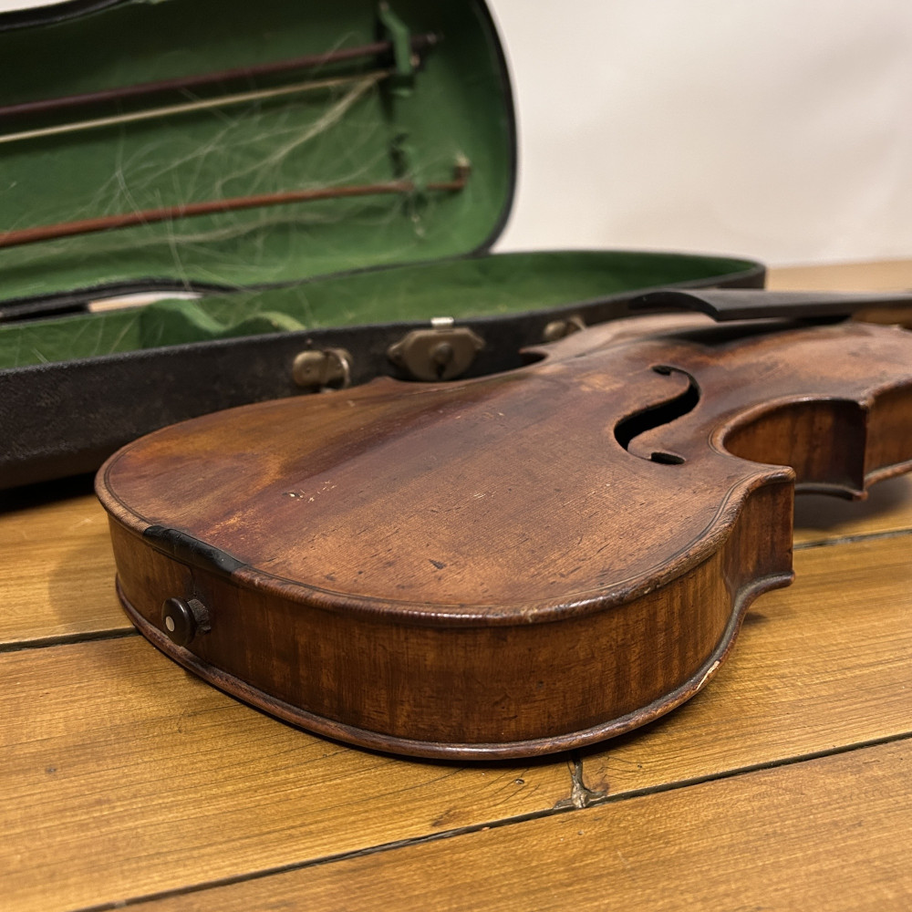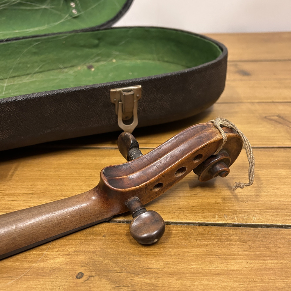 Štítek odkazující na Johanna Martina Stosse s datem 1830. Martin Stoss (1778–1838) byl významný a uznávaný loutnařem a císařským dvorním výrobcem houslí ve Vídni na začátku 19. století.