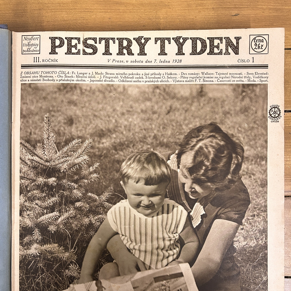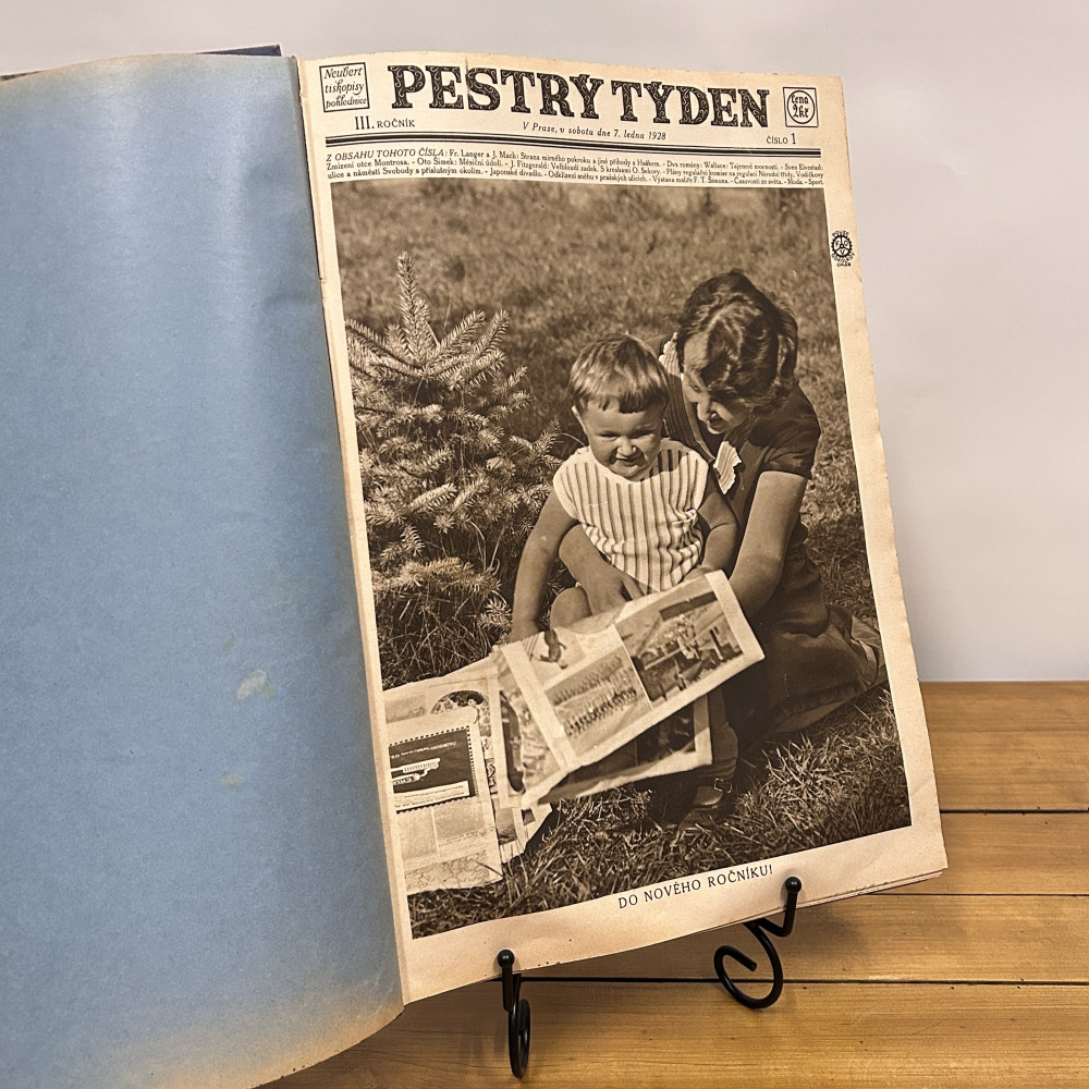 První číslo III. ročníku moderního obrázkového časopisu Pestrý týden, které vyšlo v Praze v sobotu 7. ledna 1928. Časopis vydávaly Grafické závody Václava Neuberta a synů se sídlem na pražském Smíchově. Pestrý týden byl populární československý ilustrovaný týdeník vycházející v letech 1926–1945. Časopis se vyznačoval vysokou úrovní obrazového zpravodajství, módy, sportu a kultury.