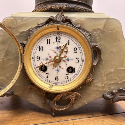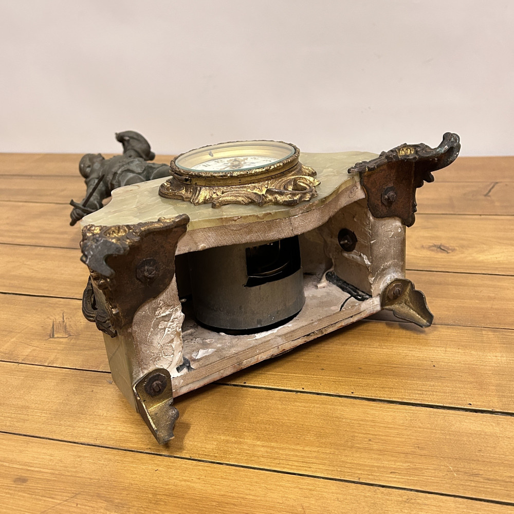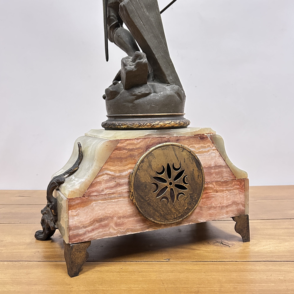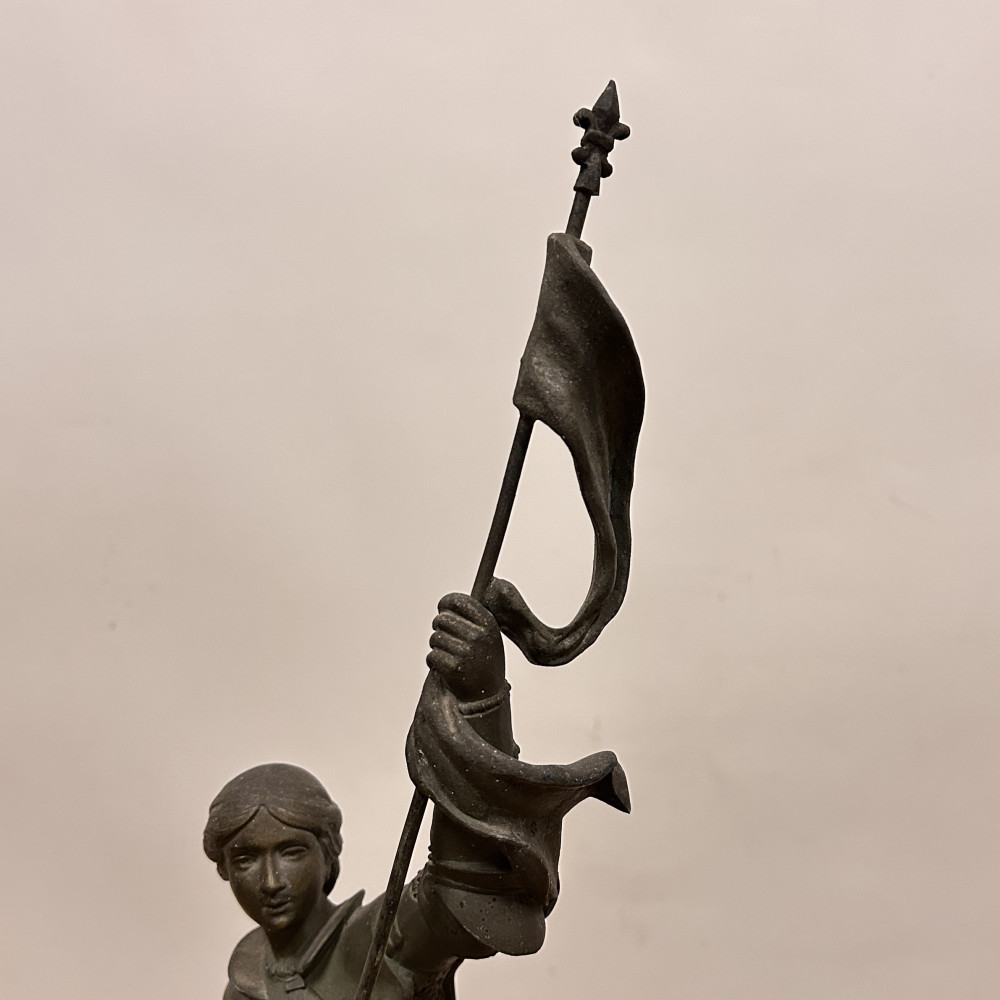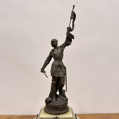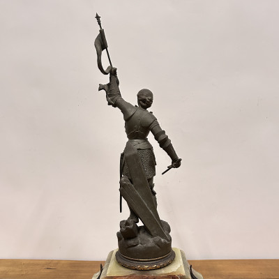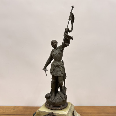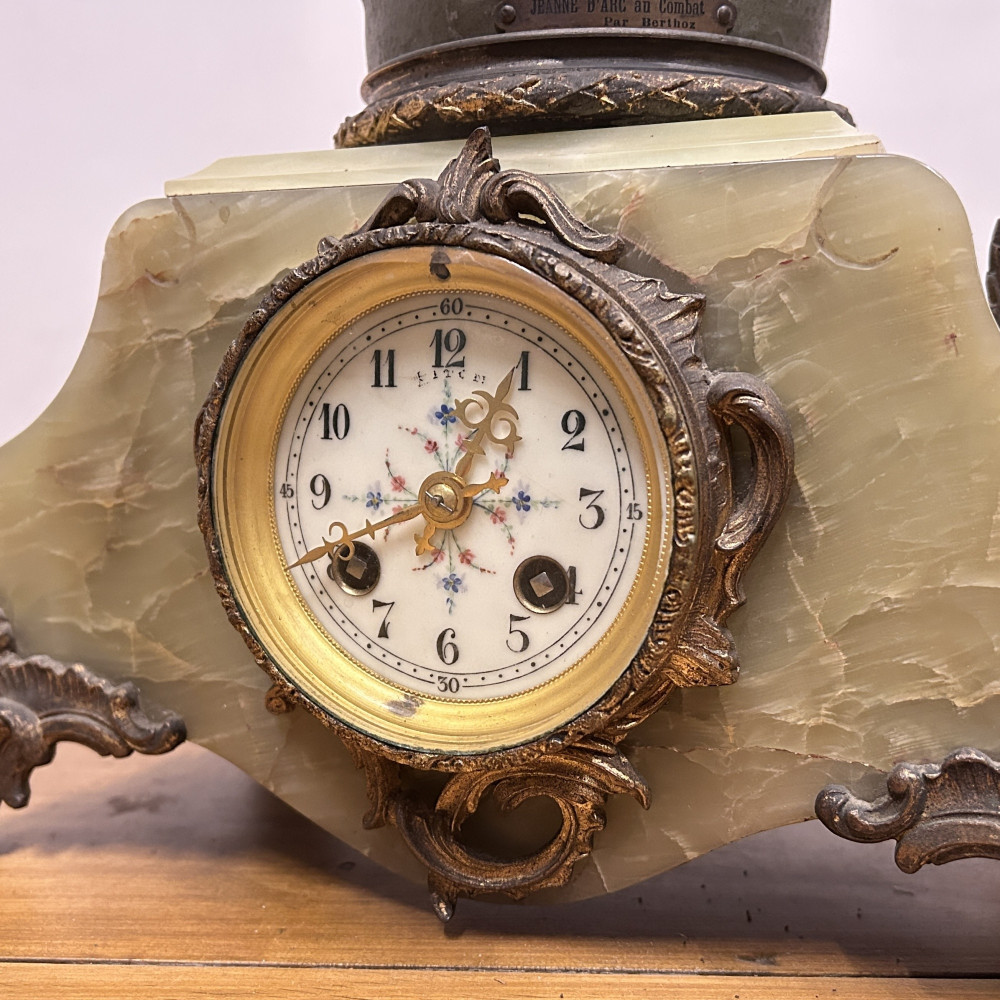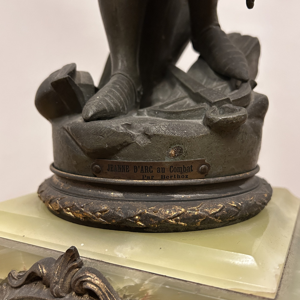 Mramorové hodiny s bronzovou soškou Johanky z Arku, Berthoz