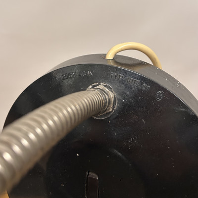 Díky svému industriálnímu vzhledu je tato bakelitová lampa nejen praktickým osvětlením, ale i designovým prvkem, který upoutá pozornost.