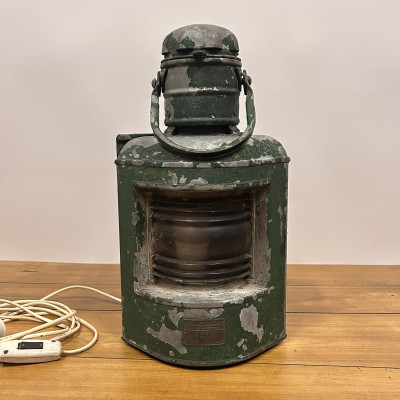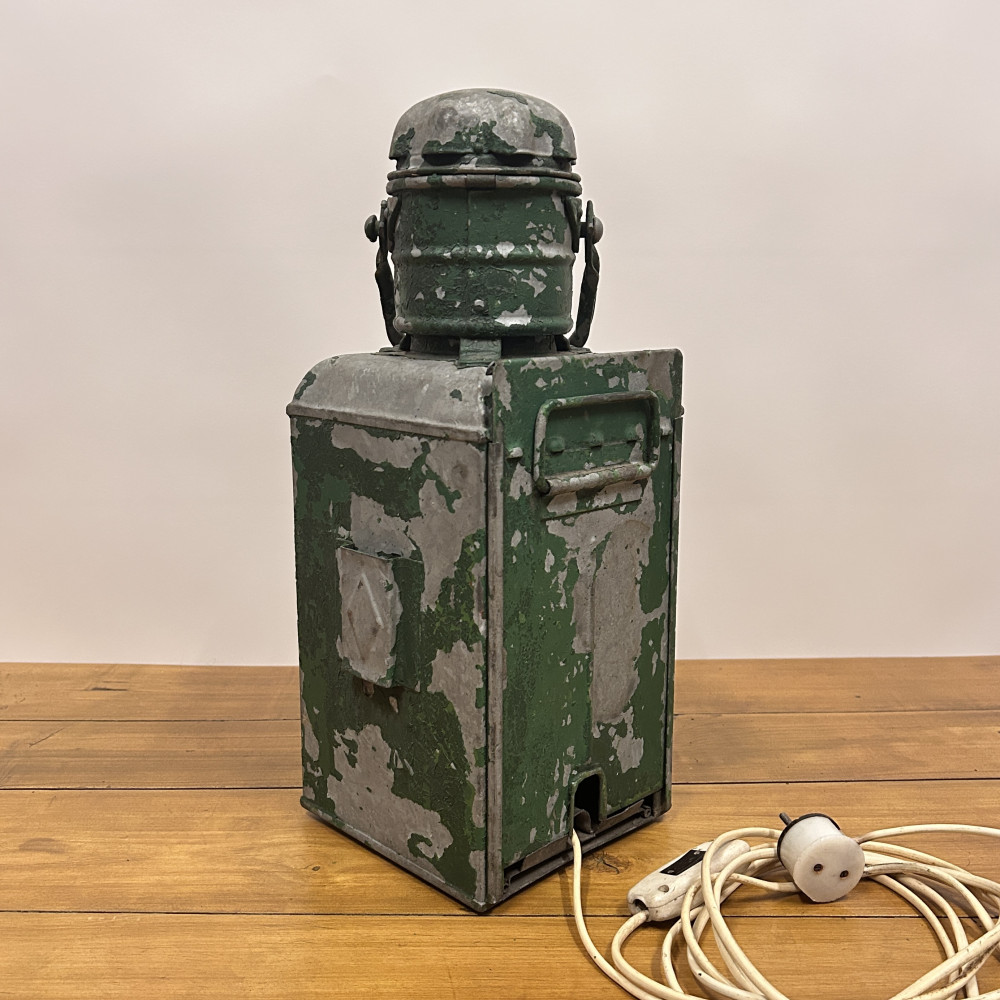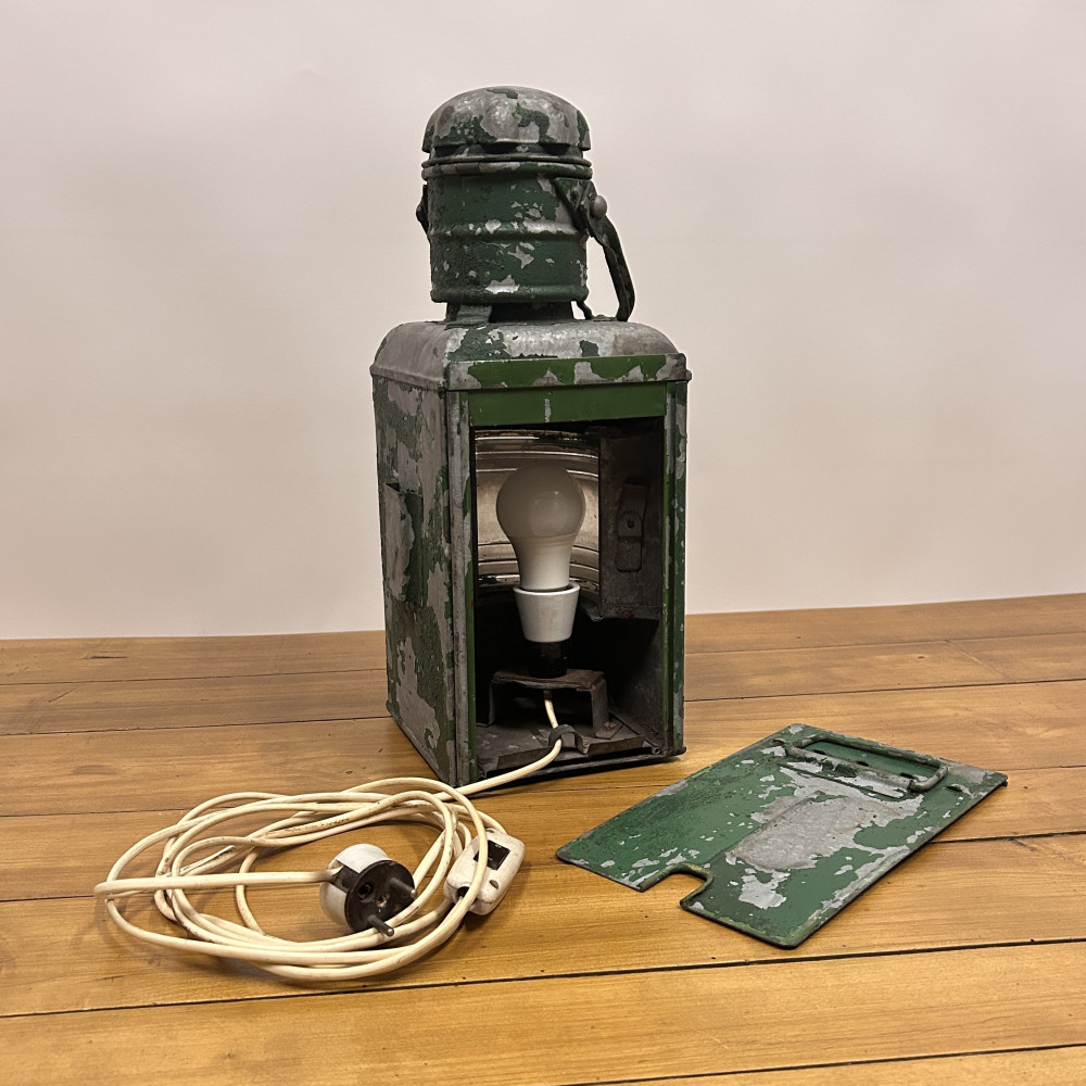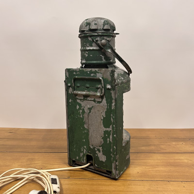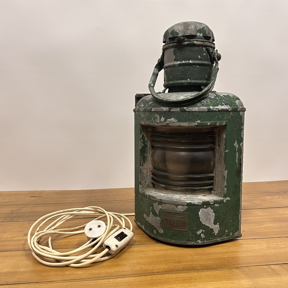 Starožitná německá námořní lampa - lucerna, která se dříve používala na lodích k signalizaci a navigaci. Značeno: VEB schiffslaternenwerk ueckermünde nr. 12328 PTS 64 TGL 23 - 9510 ( VEB továrna na lodní lucerny ueckermünde )