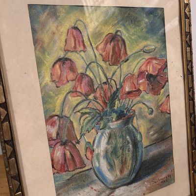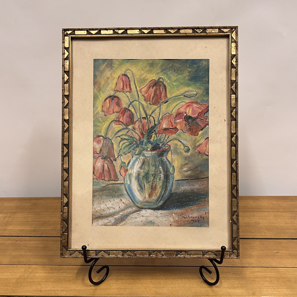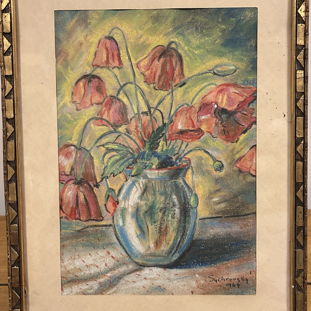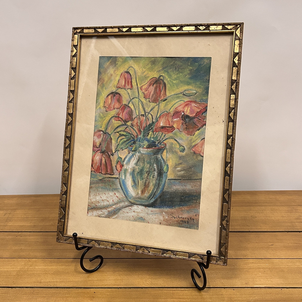 Obraz Zátiší s kyticí vlčích máků, signováno Sychrovský 1944