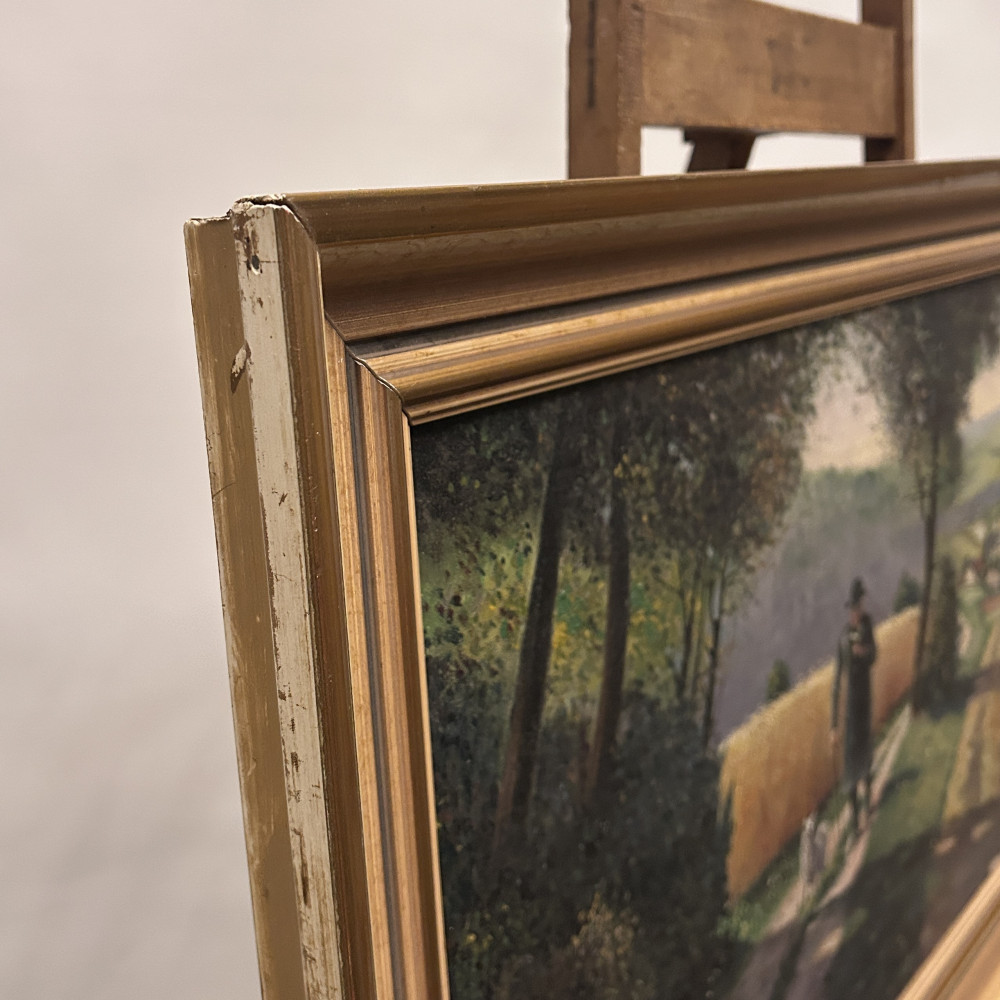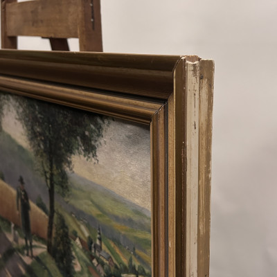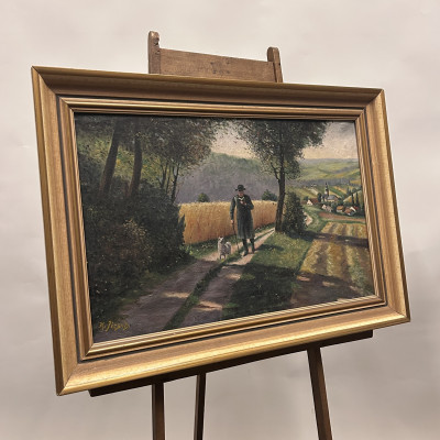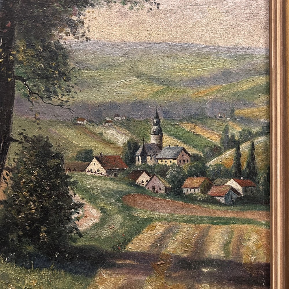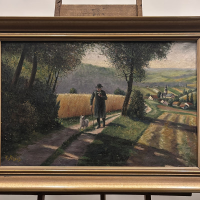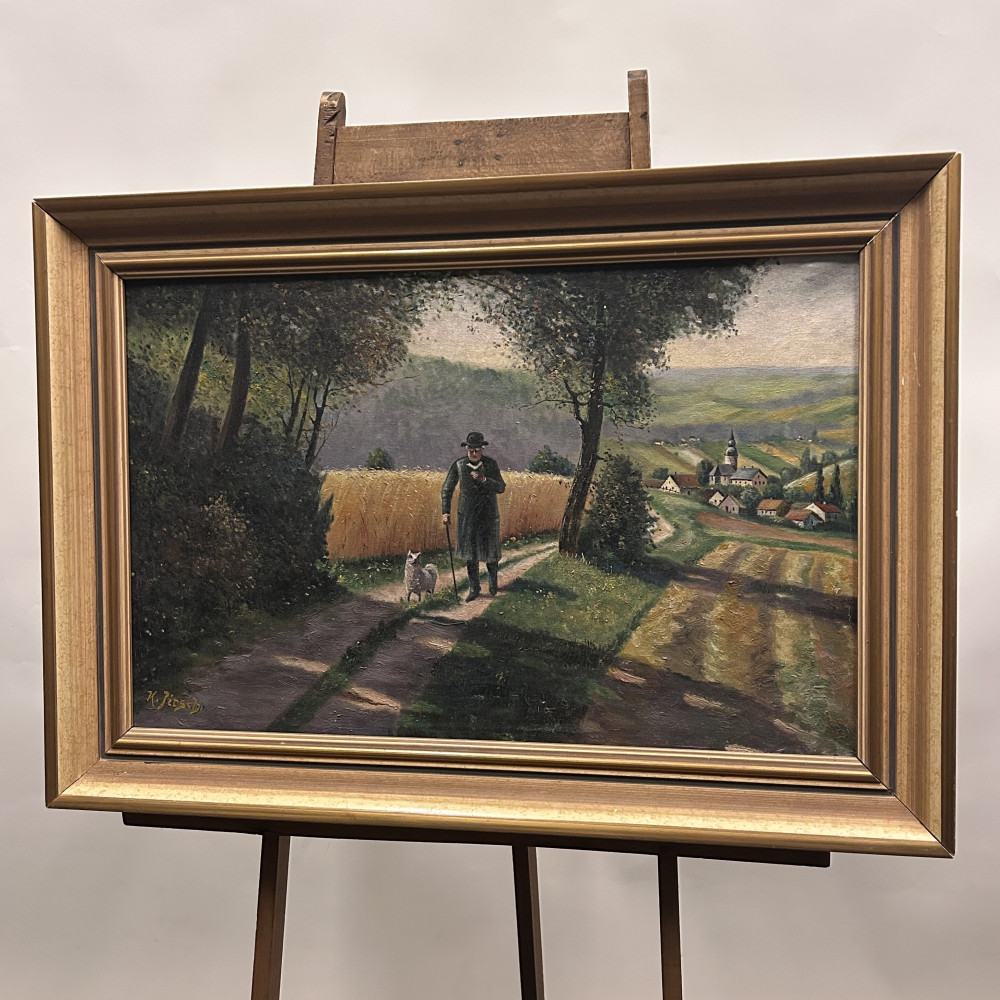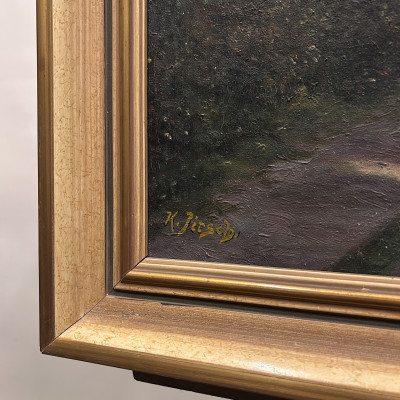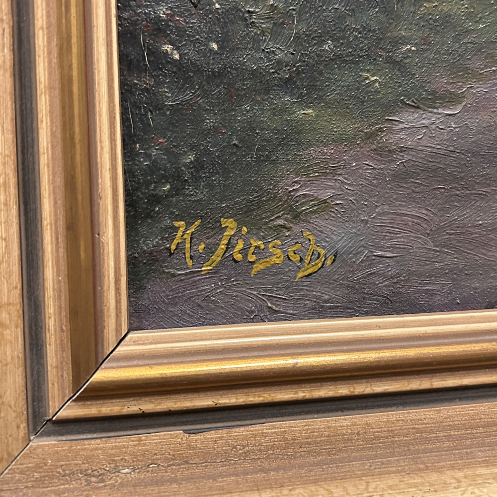 Malba na plátně je signována jménem K. Jirsch, malíř aktivní především v první polovině 20. století. Často se zaměřoval na realistické krajinomalby a žánrové výjevy z venkovského prostředí.