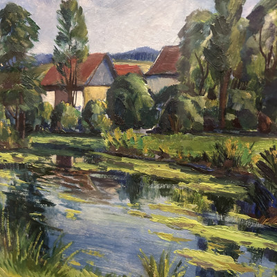Obraz Tůň v Brodcích u Ml. Boleslavi, signováno Kment Břetislav 1960