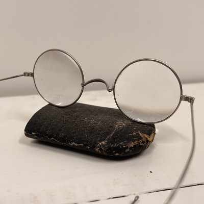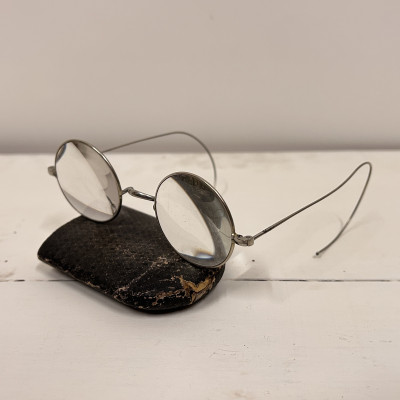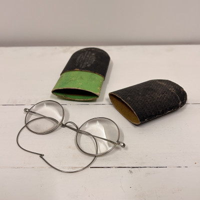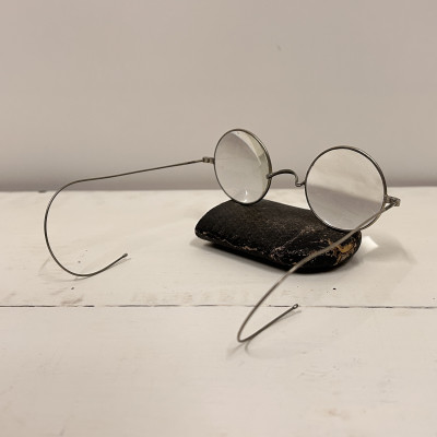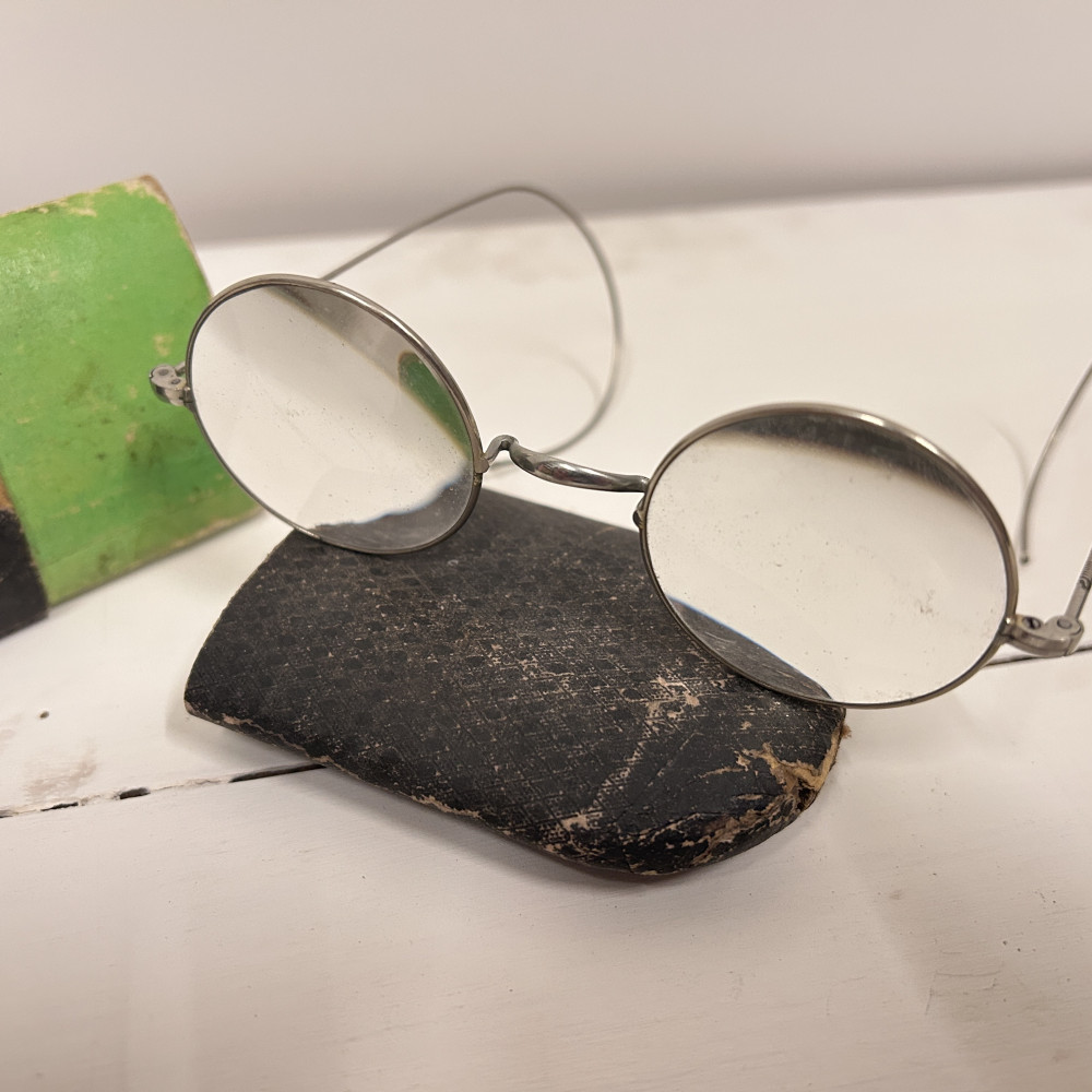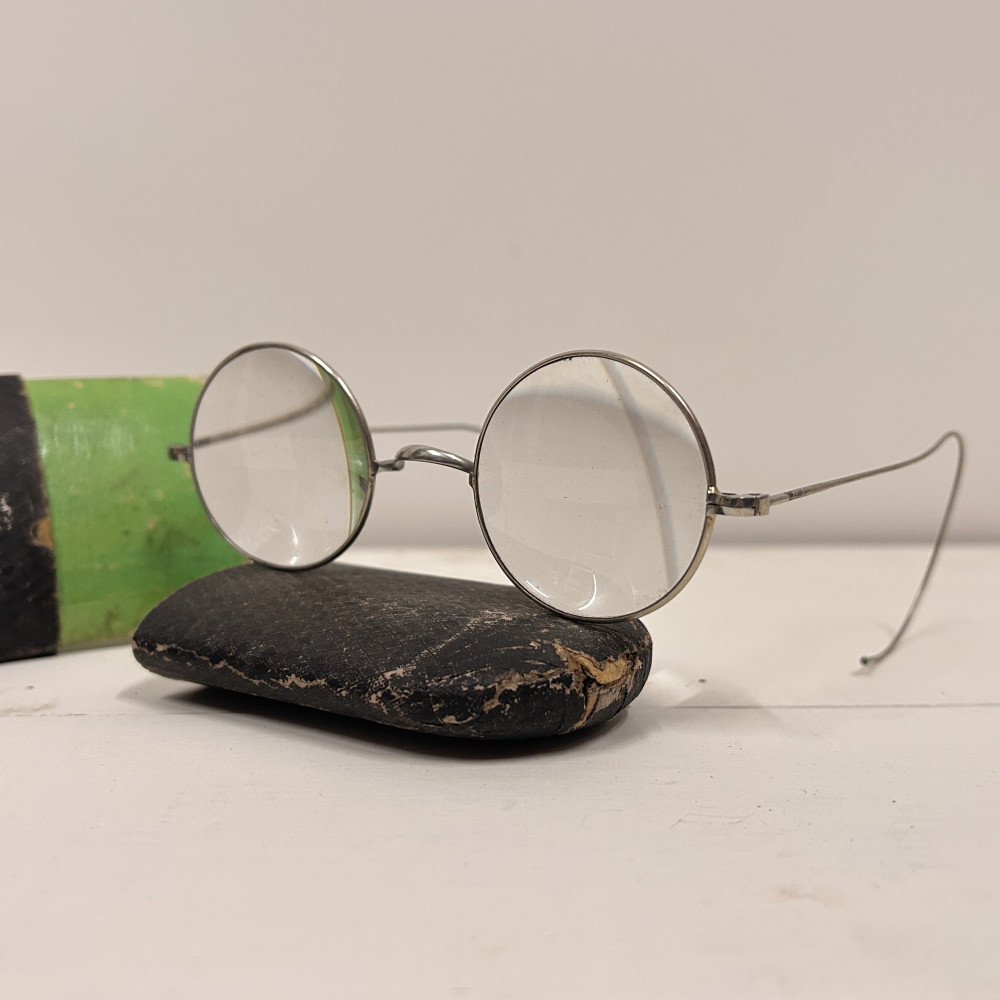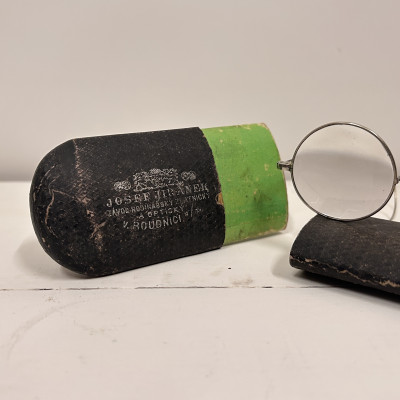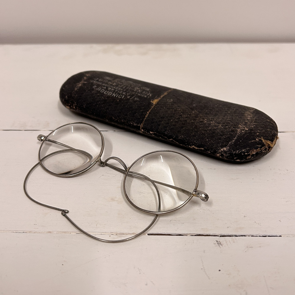 Lenonky - starožitné dioptrické brýle s pouzdrem Josef Jiránek, Závod hodinářský zlatnický a optický v Roudnici nad Label