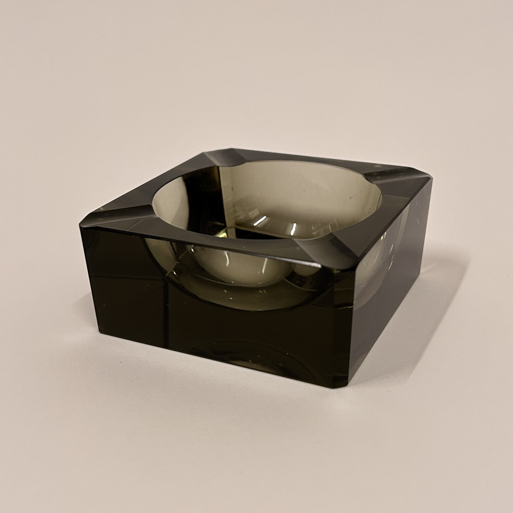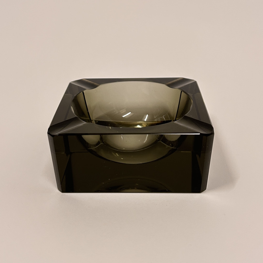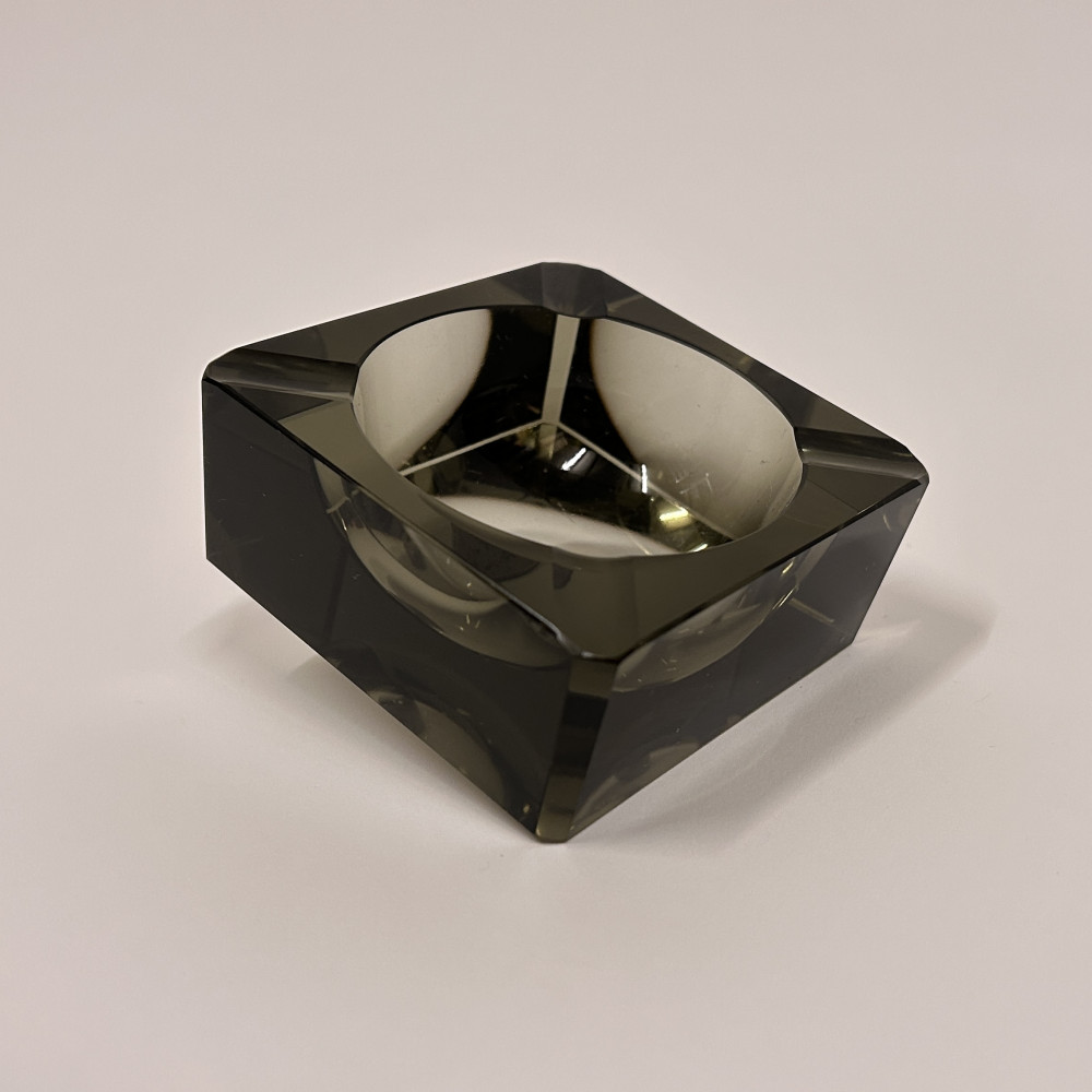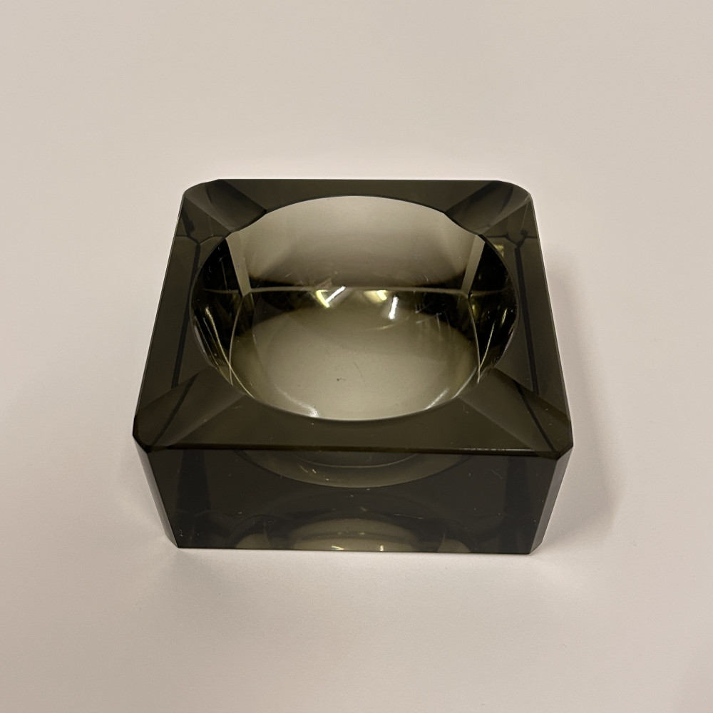 Hutní popelník - čiré sklo s ambrovými nálepy Josef Hospodka