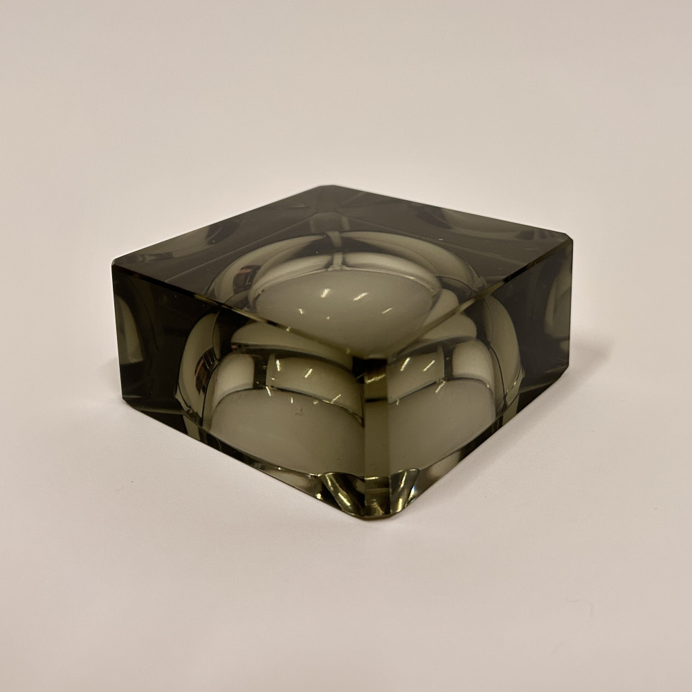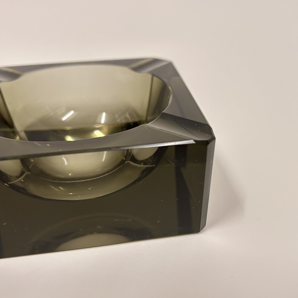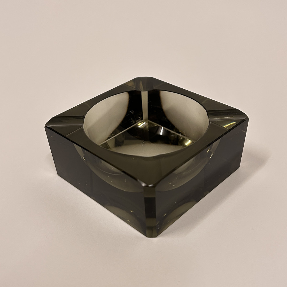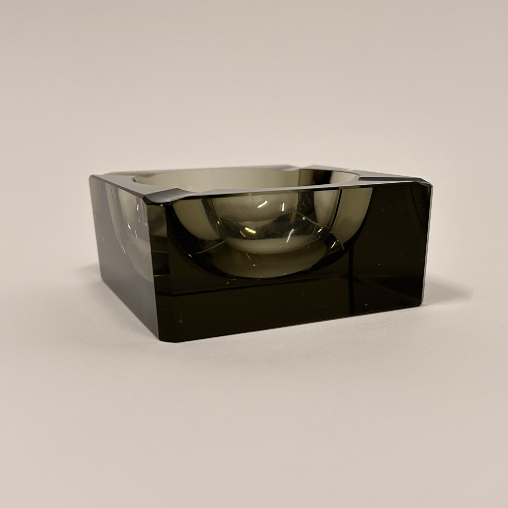 Hutní popelník - čiré sklo s ambrovými nálepy Josef Hospodka