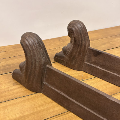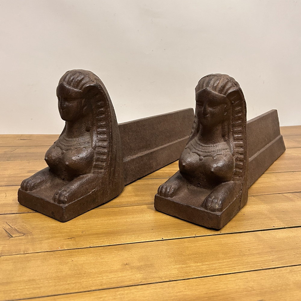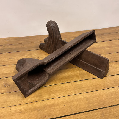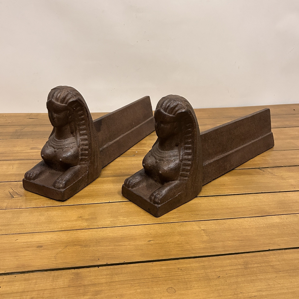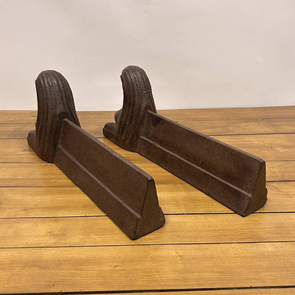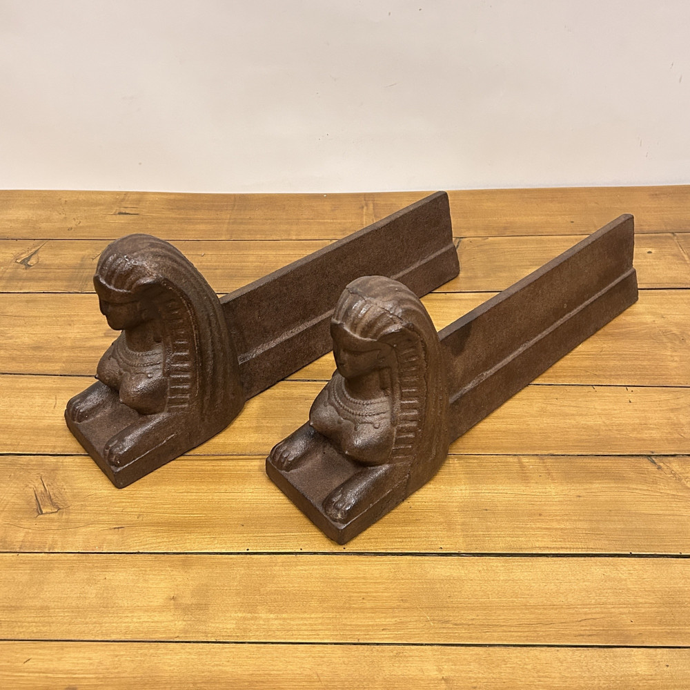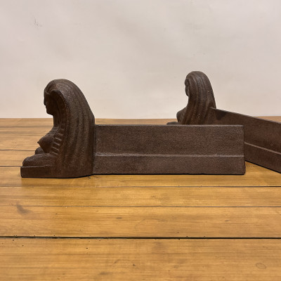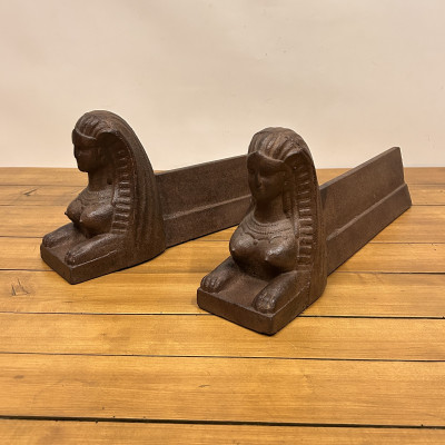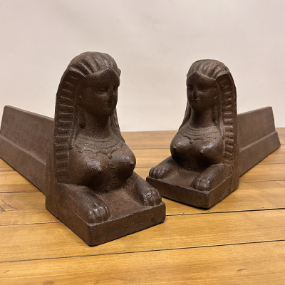 Tyto staré sfingy, plné kouzla a charakteru, obvykle z konce 19. nebo začátku 20. století, slouží jako funkční krbové příslušenství (zarážky/podstavce na dřevo) nebo jako dekorace.