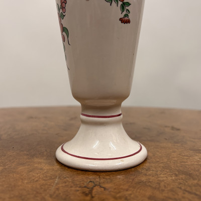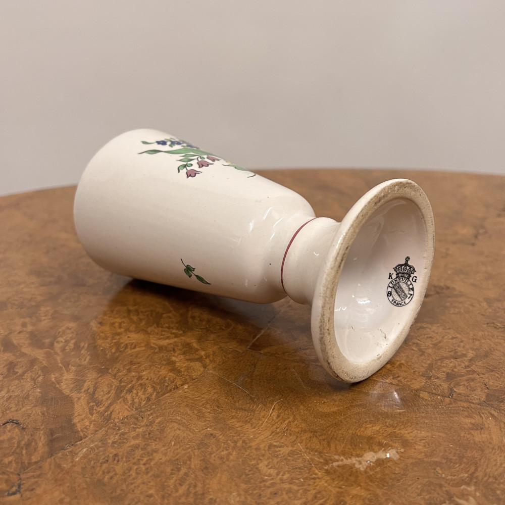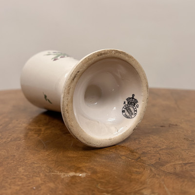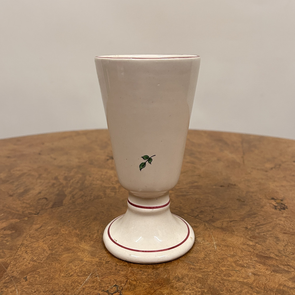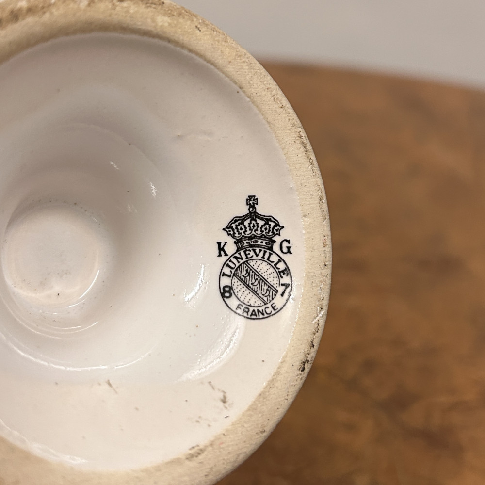 Jedná se o francouzský keramický pohárek, známý jako mazagran, s ručně malovaným květinovým vzorem, často označovaný jako vzor "Old Strasbourg" nebo "Réverbère". Tyto poháry byly typicky vyráběny francouzskou fajánsovou manufakturou Keller & Guérin (K&G) v Lunéville a pocházejí přibližně z 50. let 20. století.