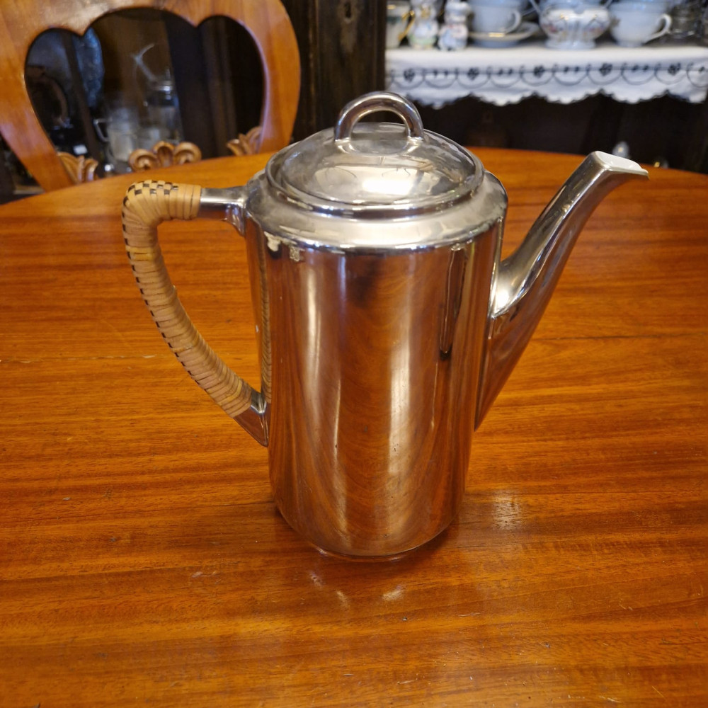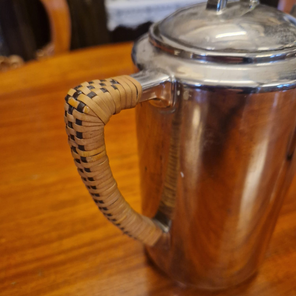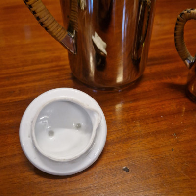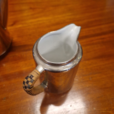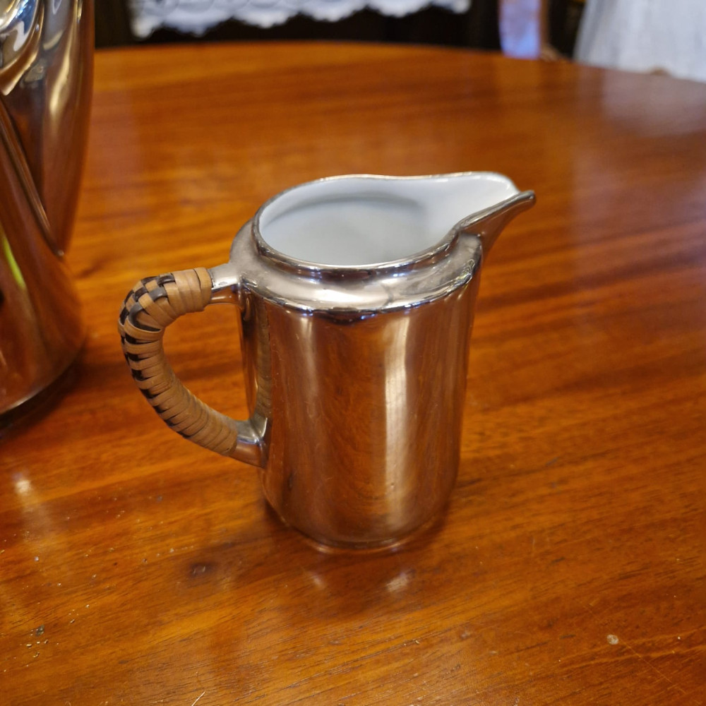 Porcelánová termokonvice s mléčenkou, obě s ratanovými rukojeťmi. Jedinečná termo porcelánová konvice spojuje eleganci klasického porcelánu s moderní technikou uchování teploty.