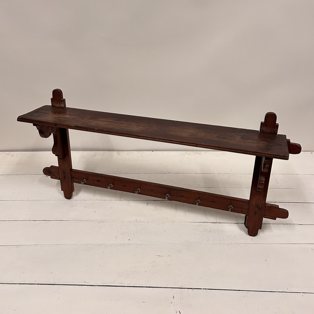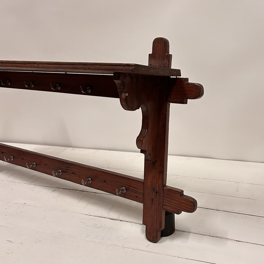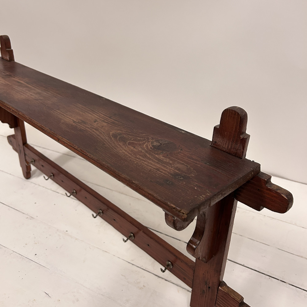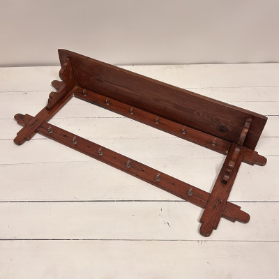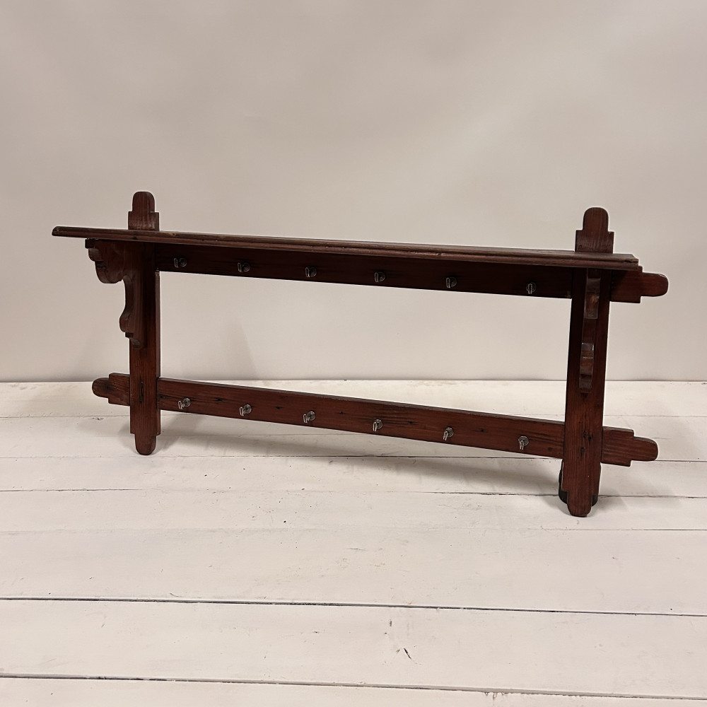 dřevěná závěsná police s 12 kovovými háčky