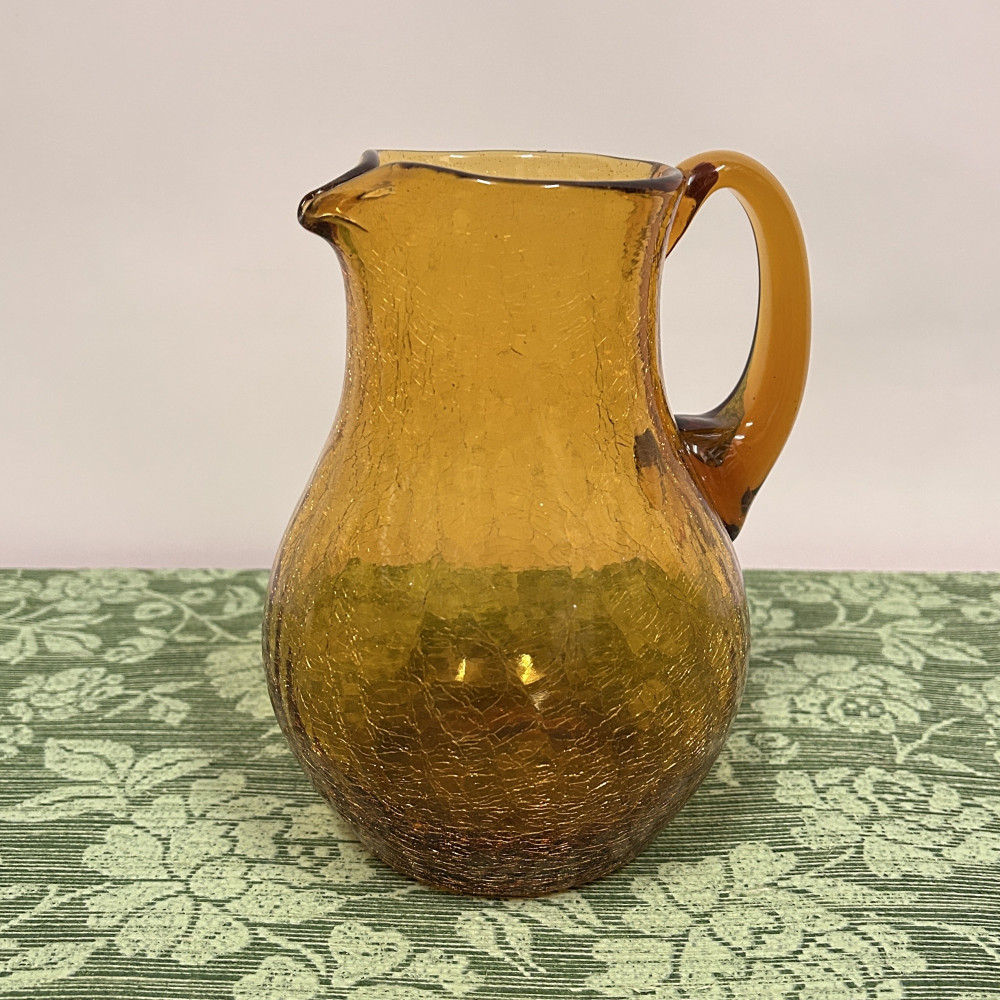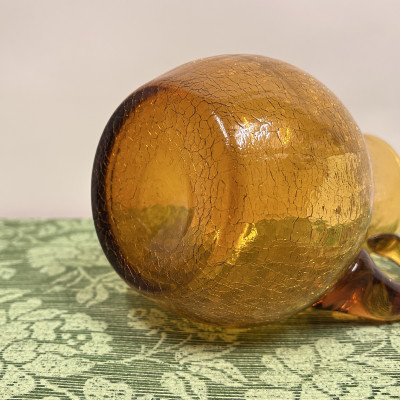 Tento džbán je vyroben v jantarové barvě a jde o typický kousek sklářské výroby. Borské sklo (Československo) v lokálním kontextu se podobné jantarové džbány s plastickým dekorem vyráběly v 60. a 70. letech právě v severočeských sklárnách.