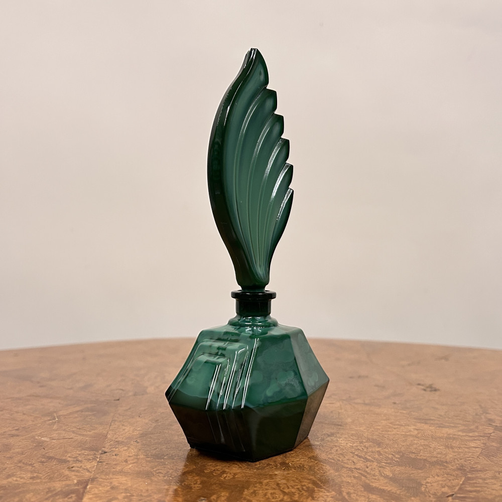 Art deco flakon na parfém z malachitového skla