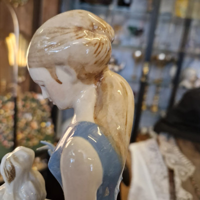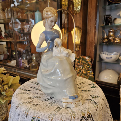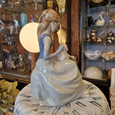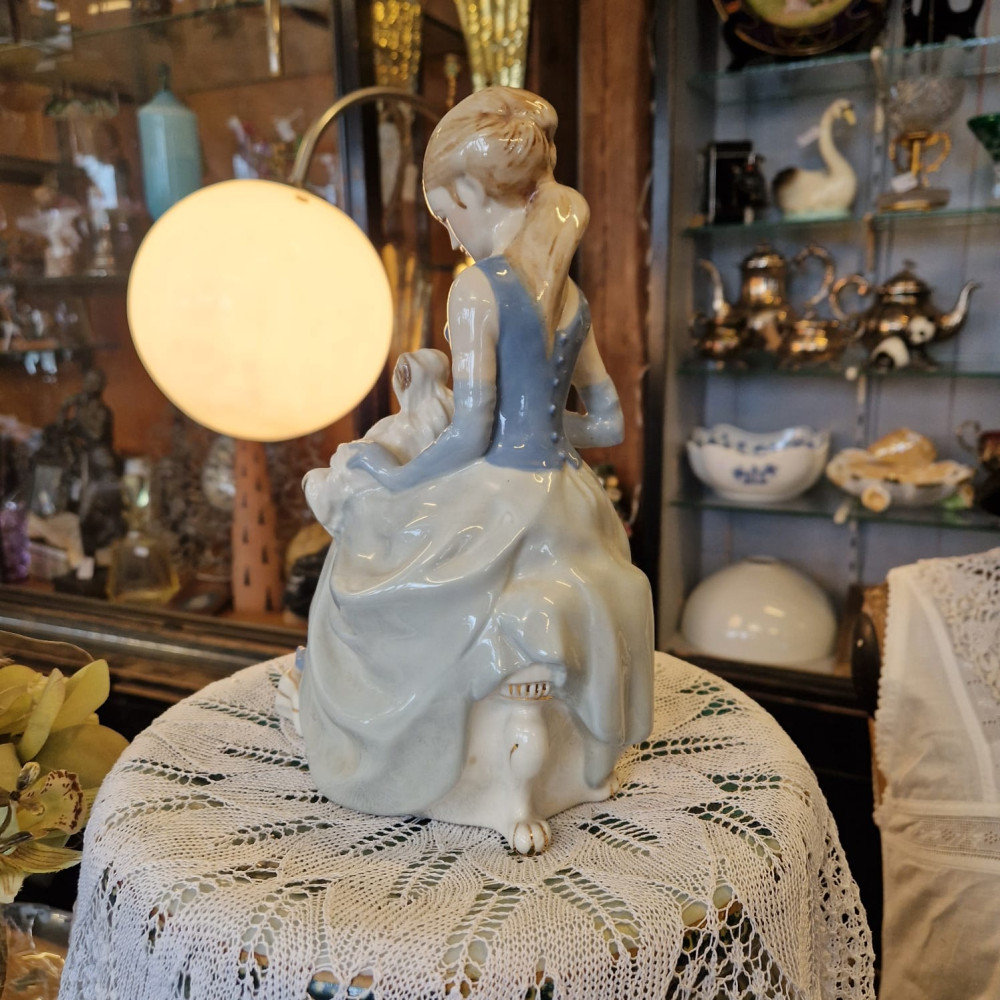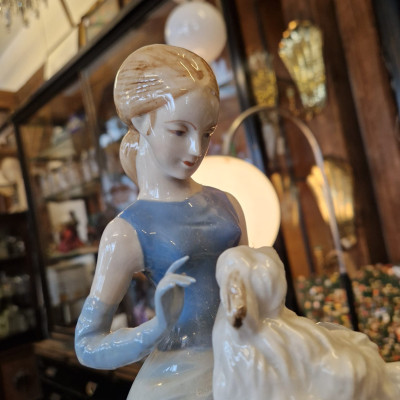 Porcelánová figurální soška Dívka s psíkem, Royal Dux Bohemia