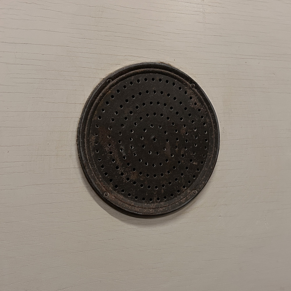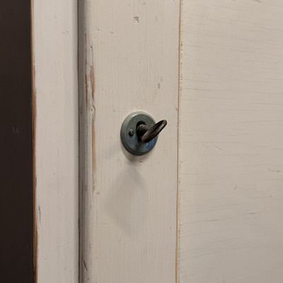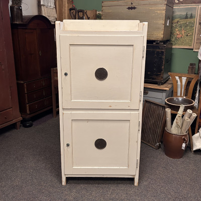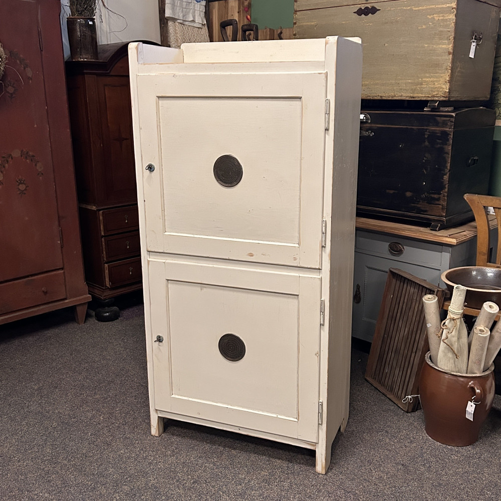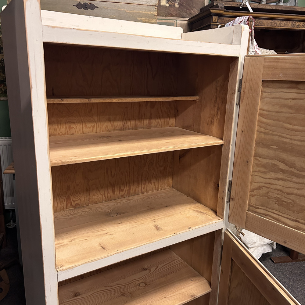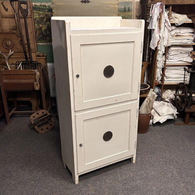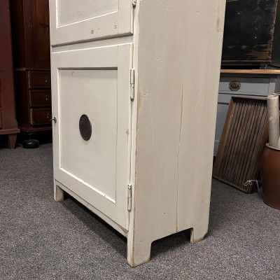 dvoudvéřová skříňka na potraviny, tzv. špajzka ve Vintage patině, vnitřní prostor je rozdělen policemi