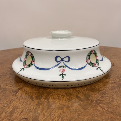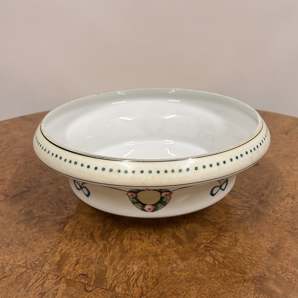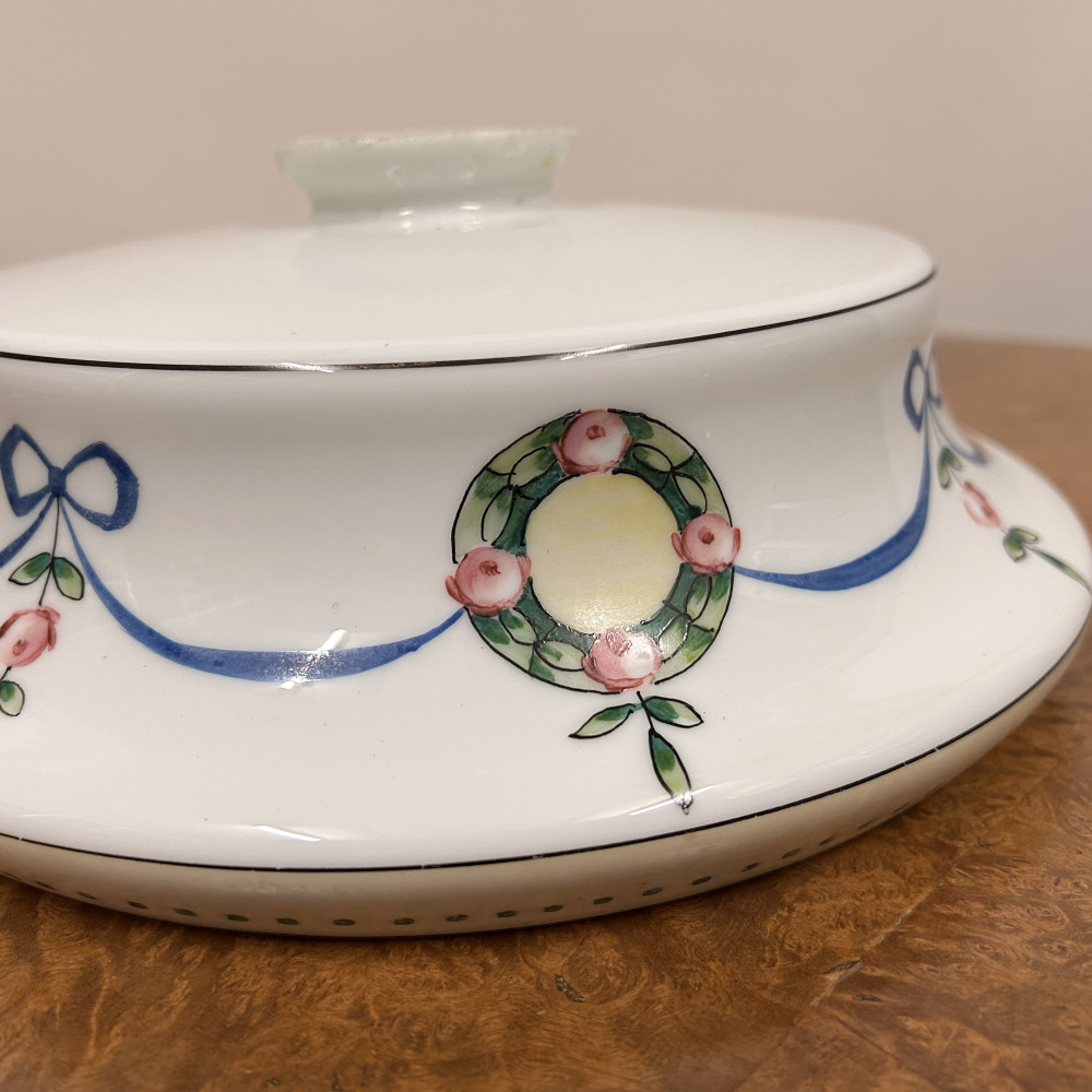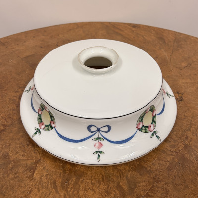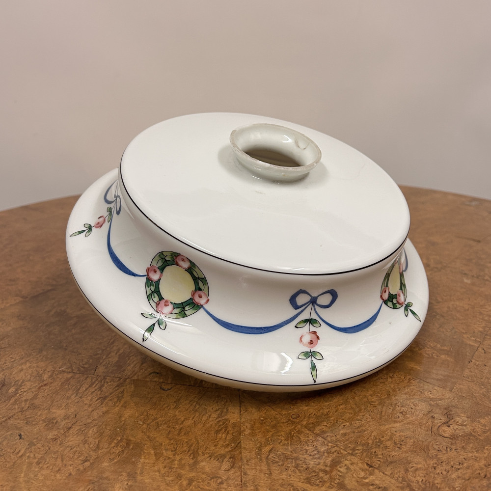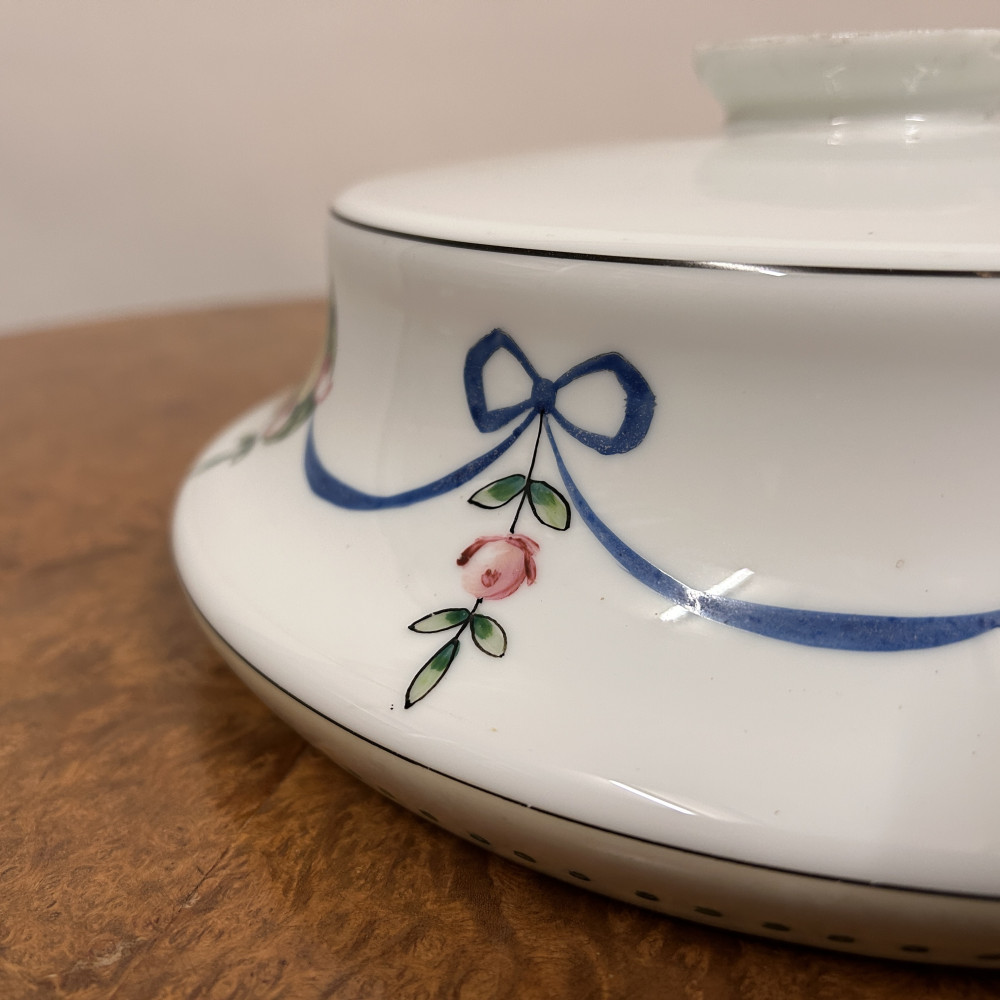 Stropnice a skleněné stínidlo s ručně malovaným dekorem květinových věnců a modrých stuh.