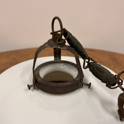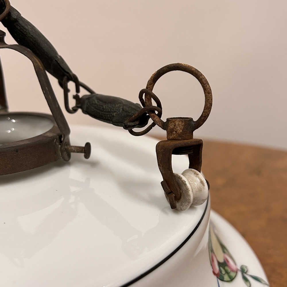 Lustr se skleněným stínidlem s ručně malovaným dekorem květinových věnců