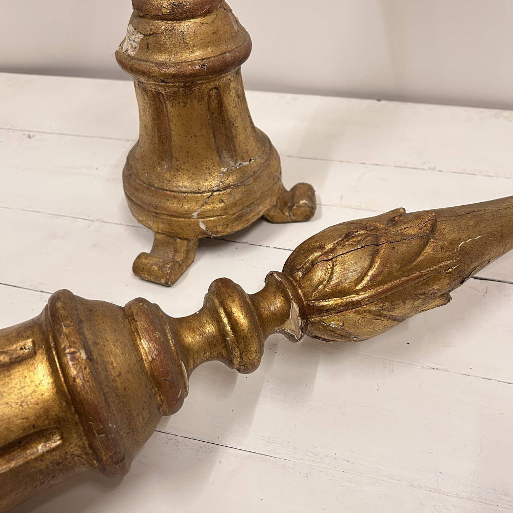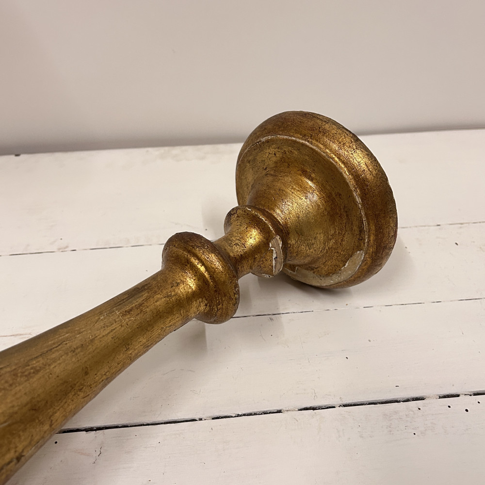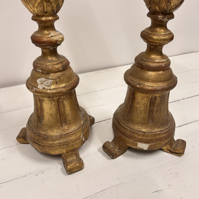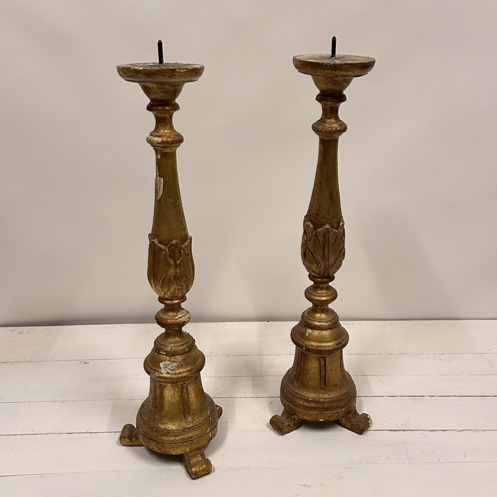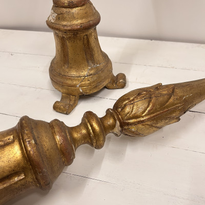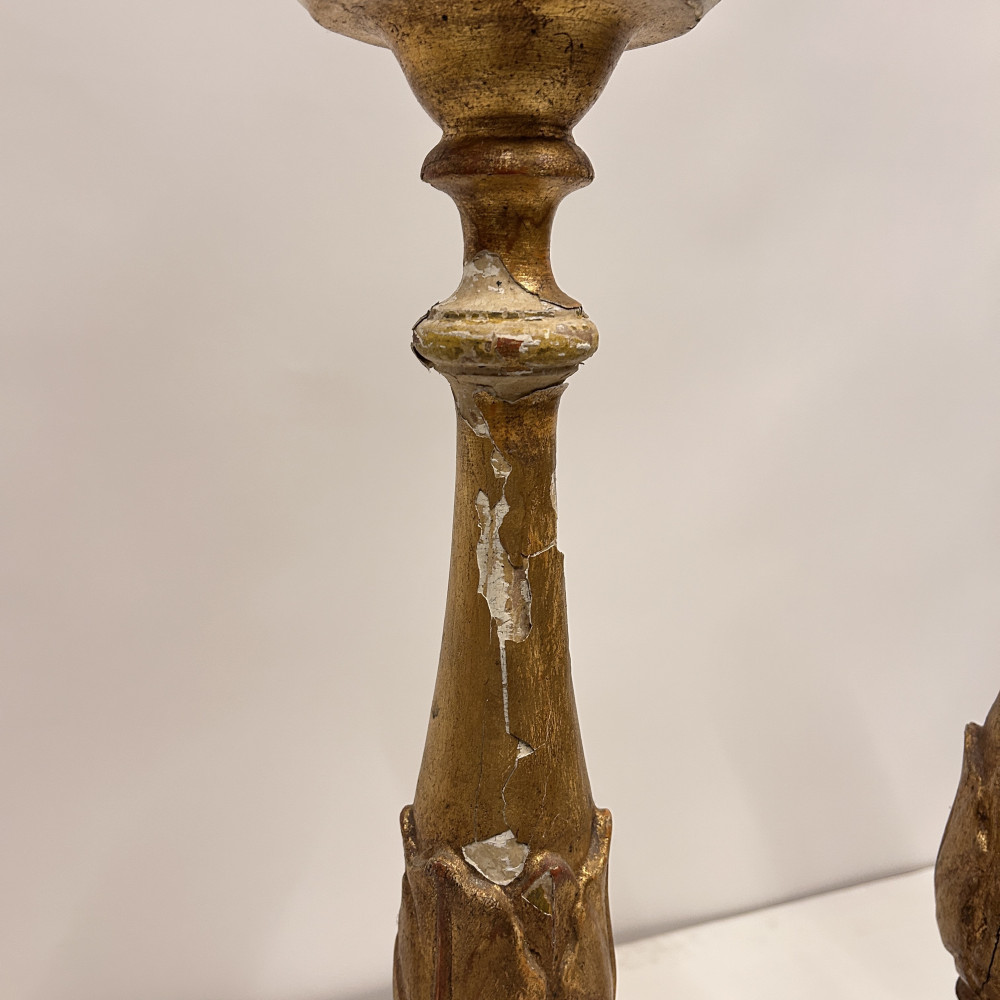 dva vysoké dřevěné svícny s povrchovou úpravou