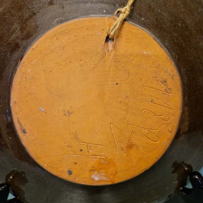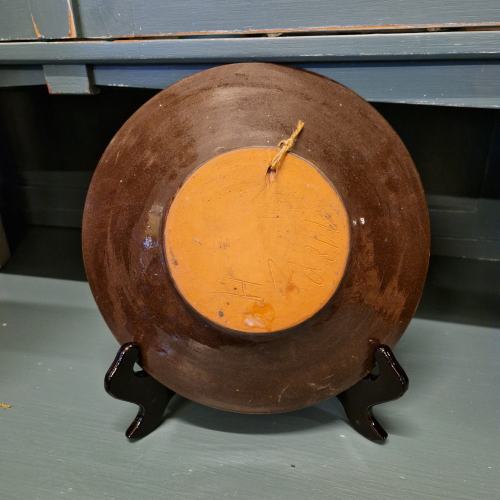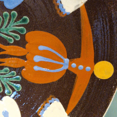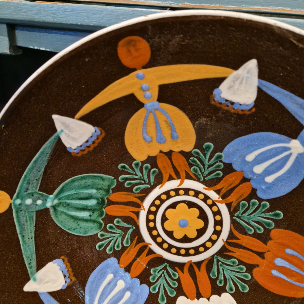 Ručně malovaný závěsný talíř, který byl vyroben v podniku ZVVD Keramika Pozdišovce na Slovensku, období 70. let 20. století.
