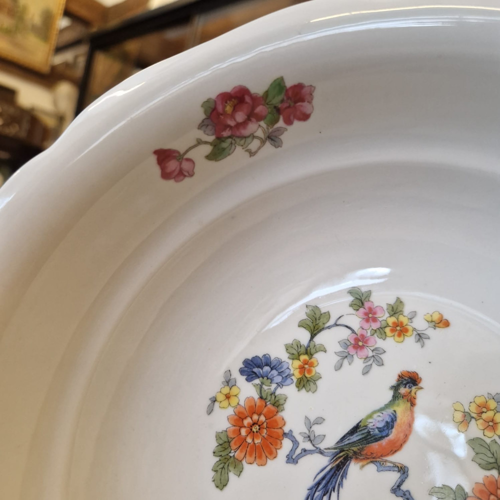 Sběratelský talíř s barevným květinovým vzorem a sedícím ptáčkem. Značeno na spodní části, porcelánka Chodov Czechoslovakia.