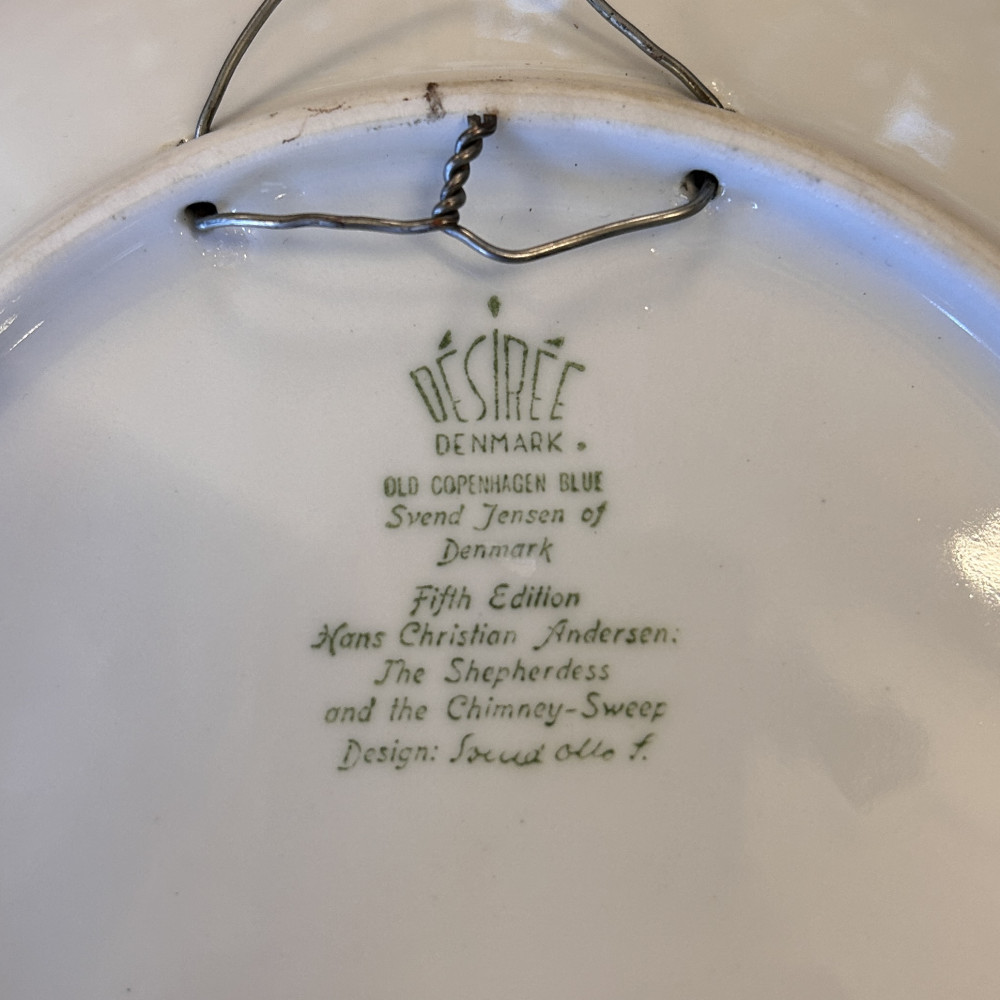 Jedná se o sběratelský talíř Desiree z roku 1974, pátou edici ze série "Old Copenhagen Blue" inspirované pohádkami Hanse Christiana Andersena. Porcelánka Desiree (také známá jako Svend Jensen of Denmark). Celkový průměr 19cm.
