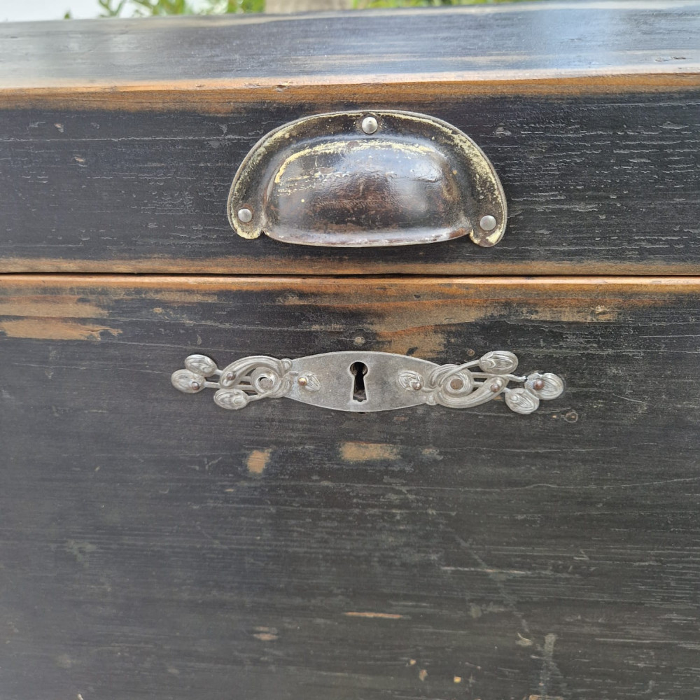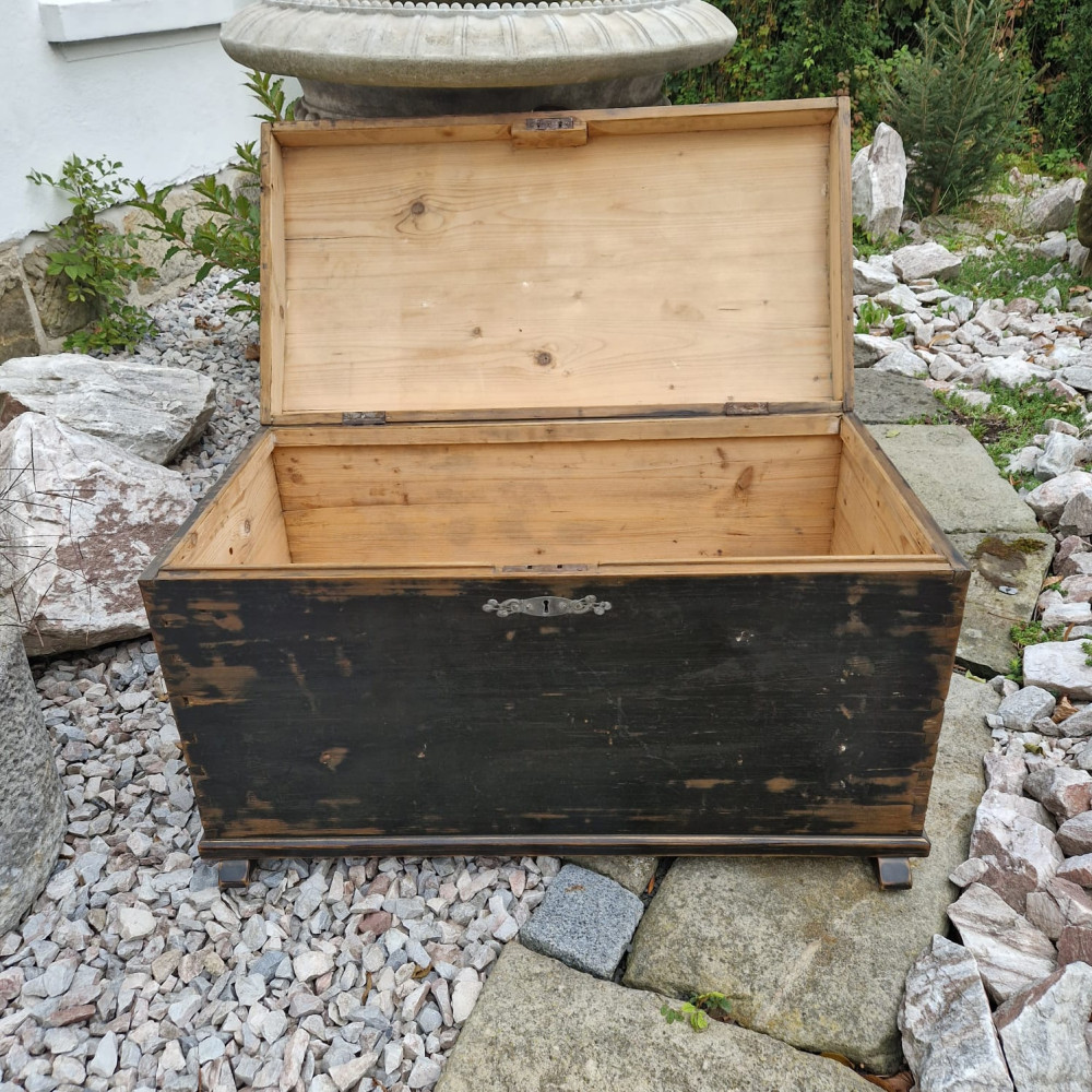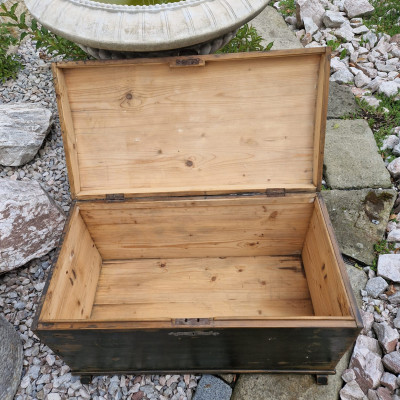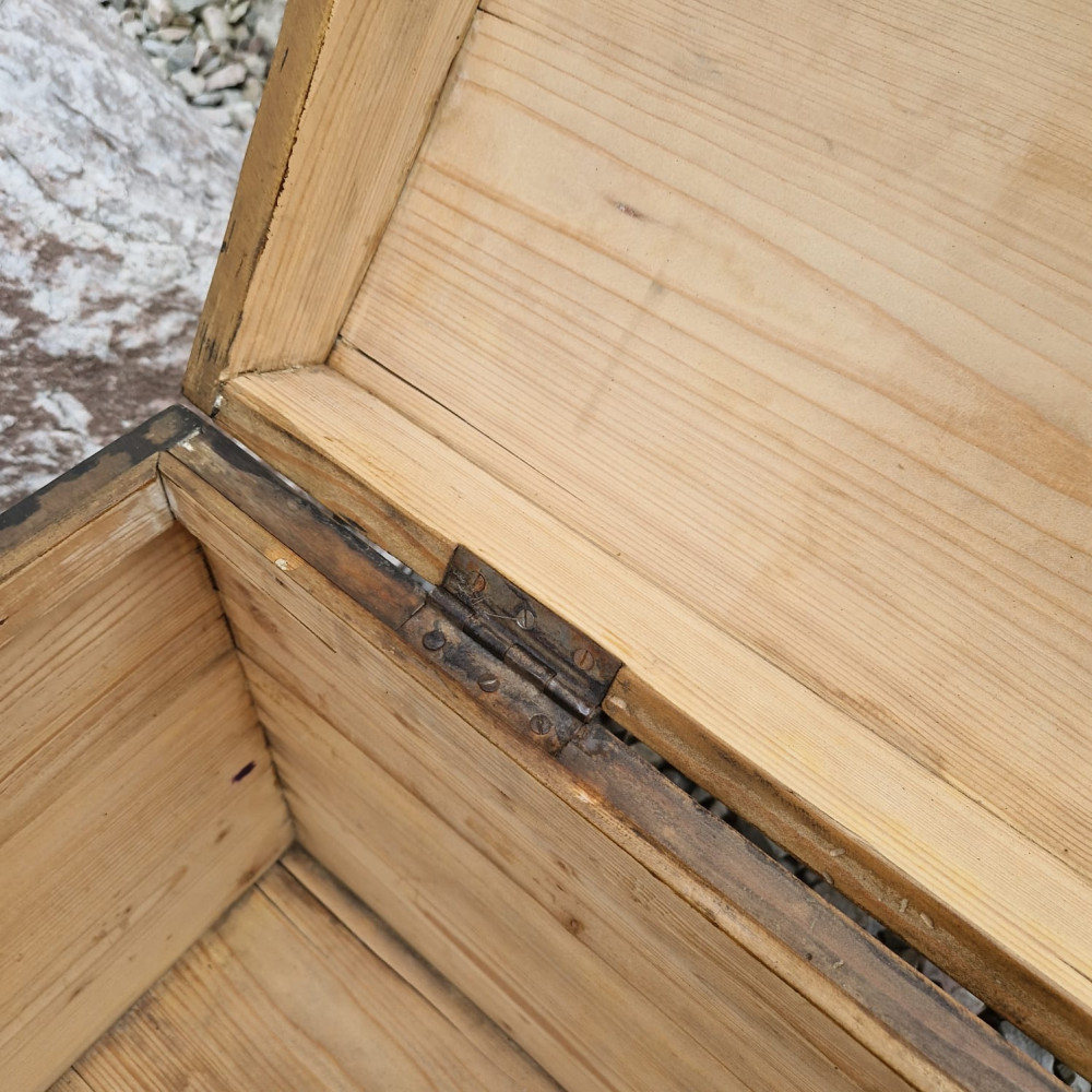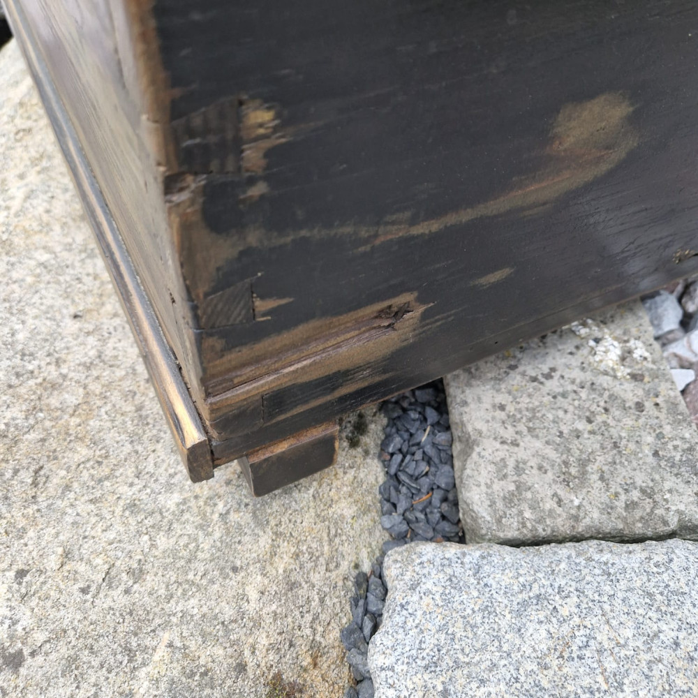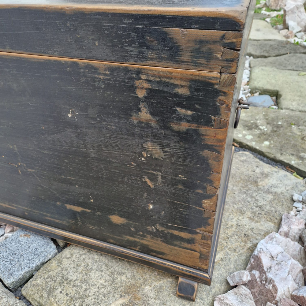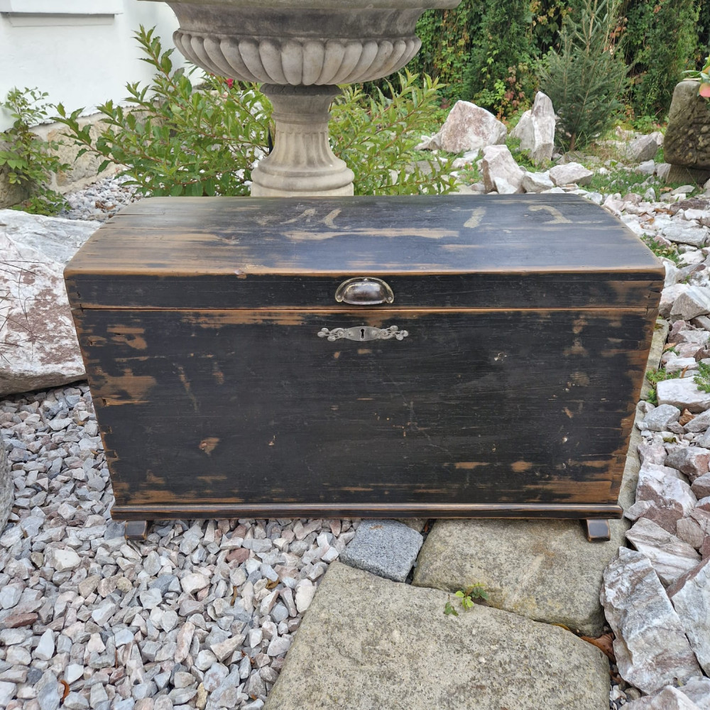 Originální dřevěná truhla s přirozenou tmavou patinou vnese do vašeho interiéru jedinečný nádech historie. Dvě postranní kovová madla k snadnému přesunutí.