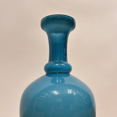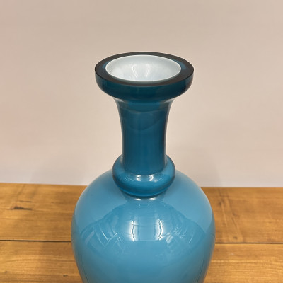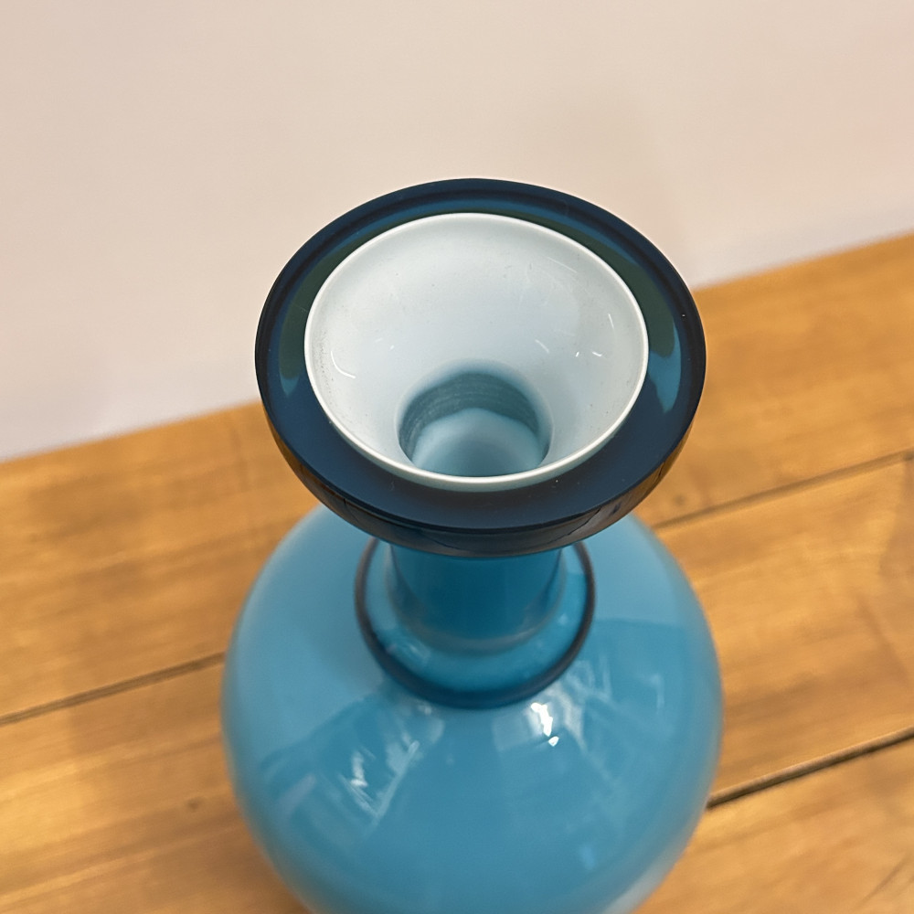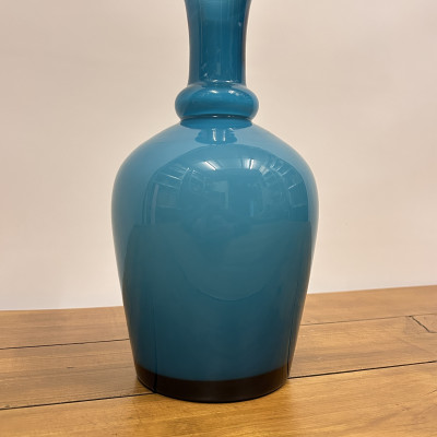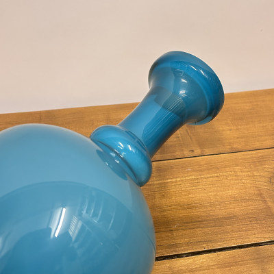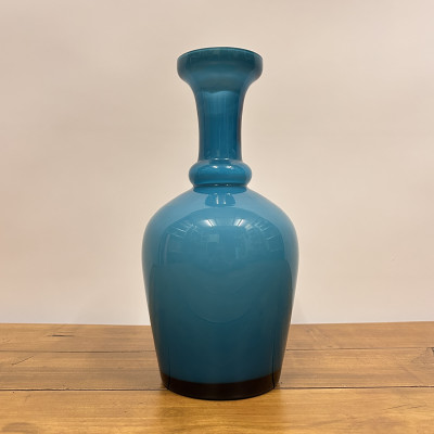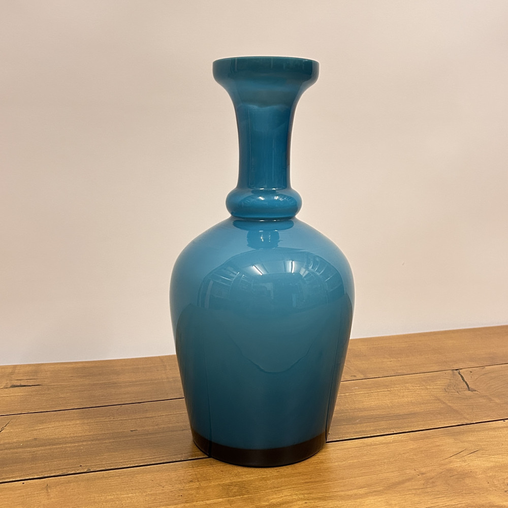 Dekorativní váza, kalich z broušeného skla– jantarový s leptaným vzorem, Egermann Nový Bor