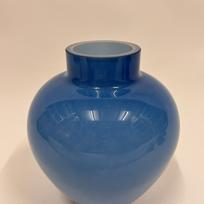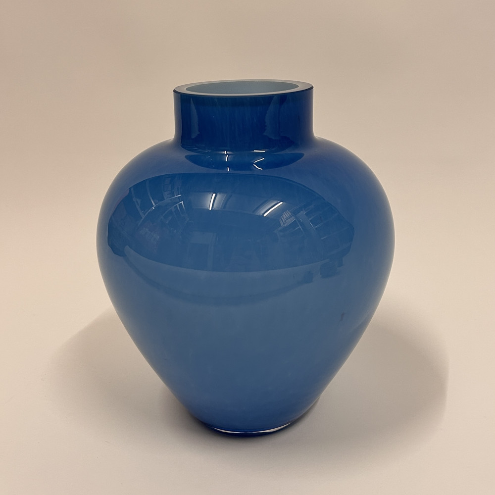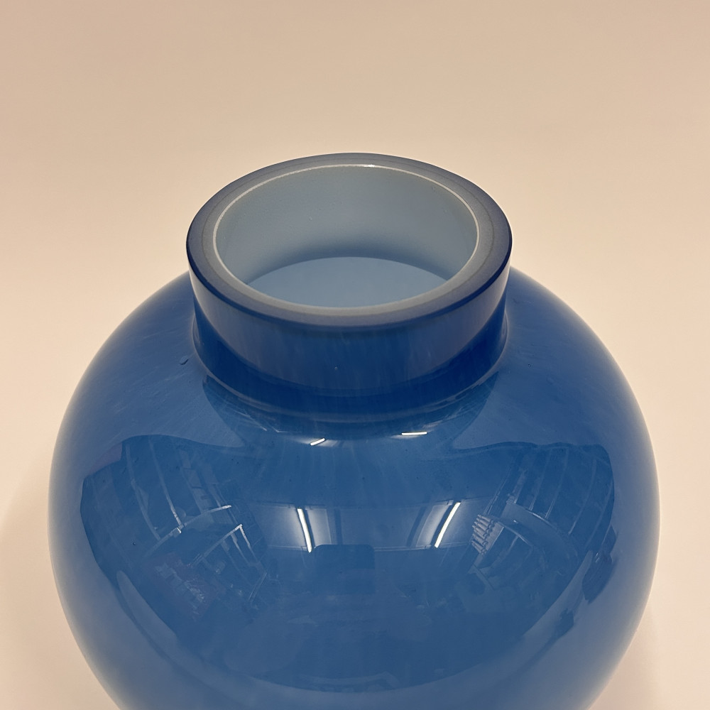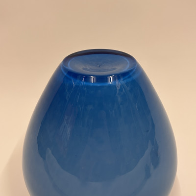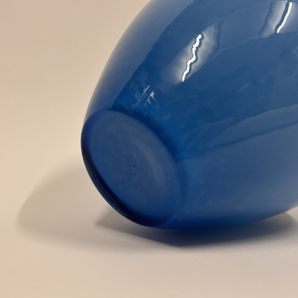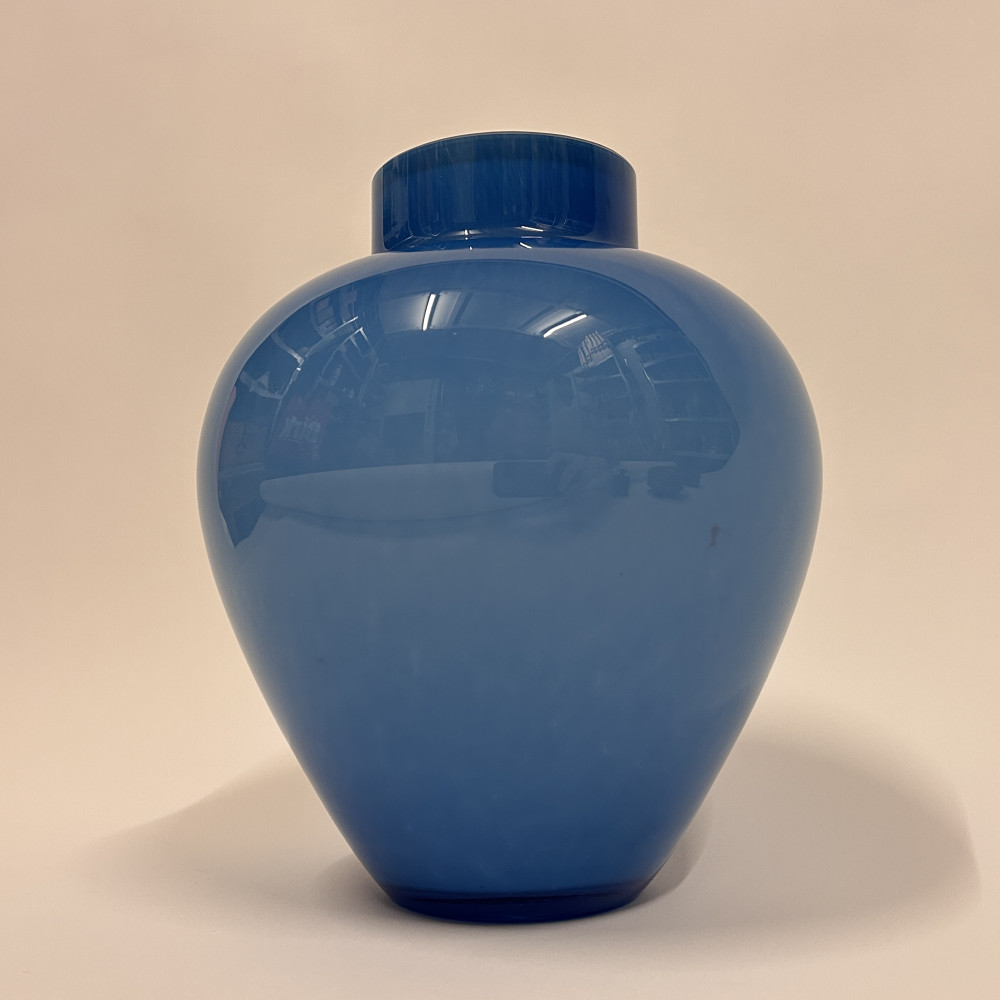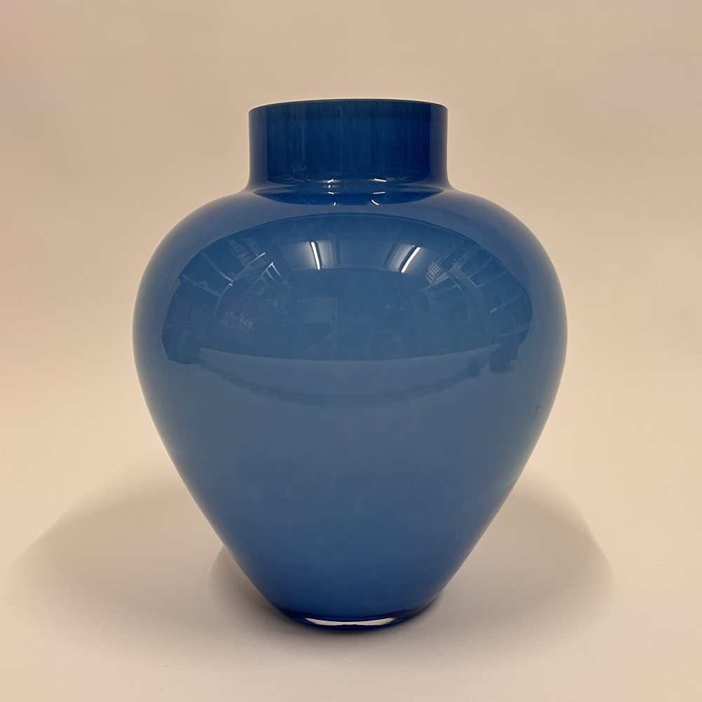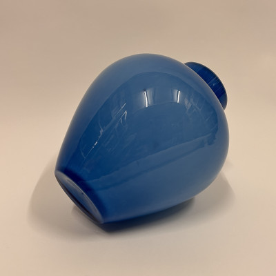 Starožitná modrá váza má žíhaný povrch a silnou sklovinu.