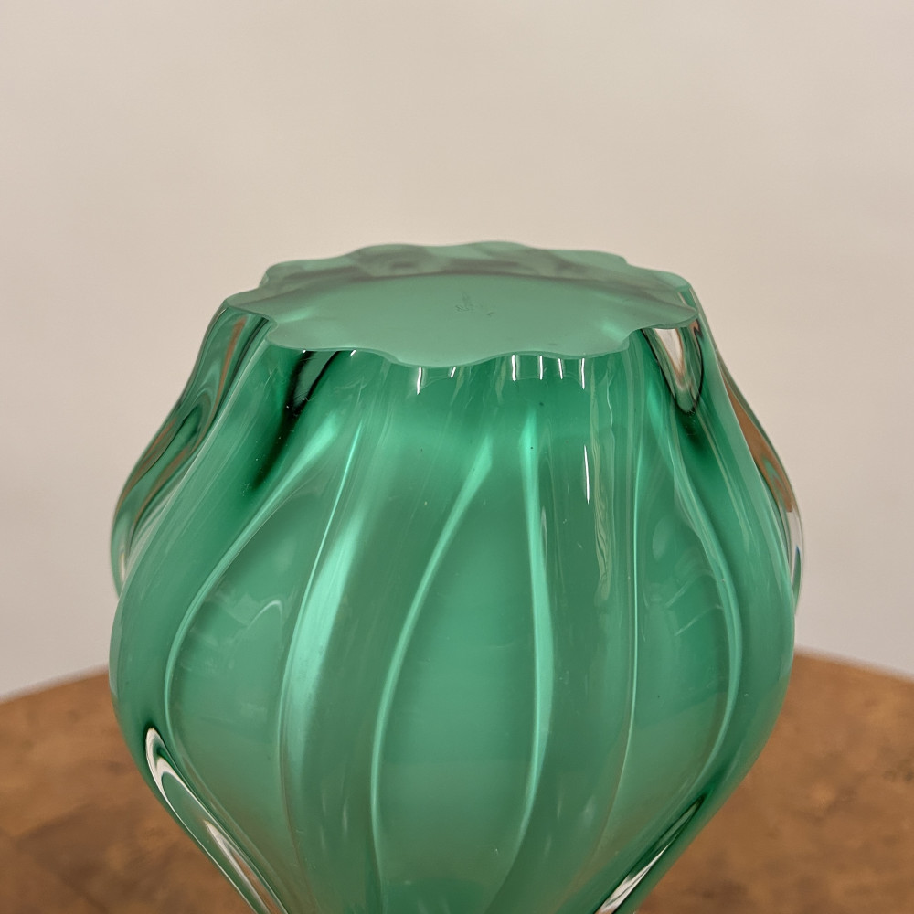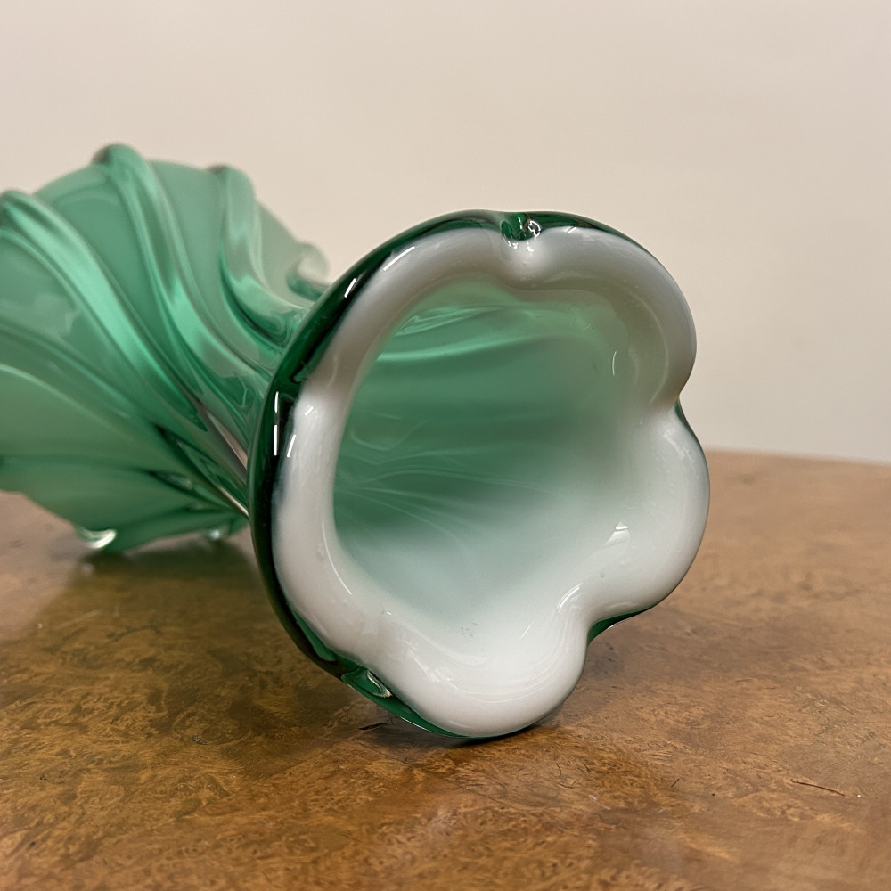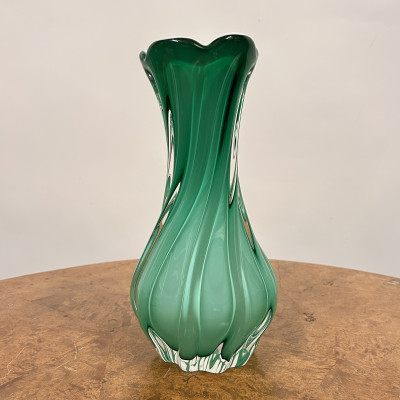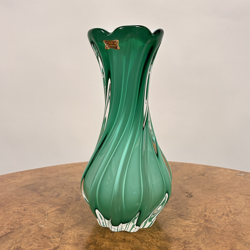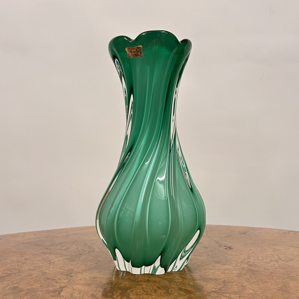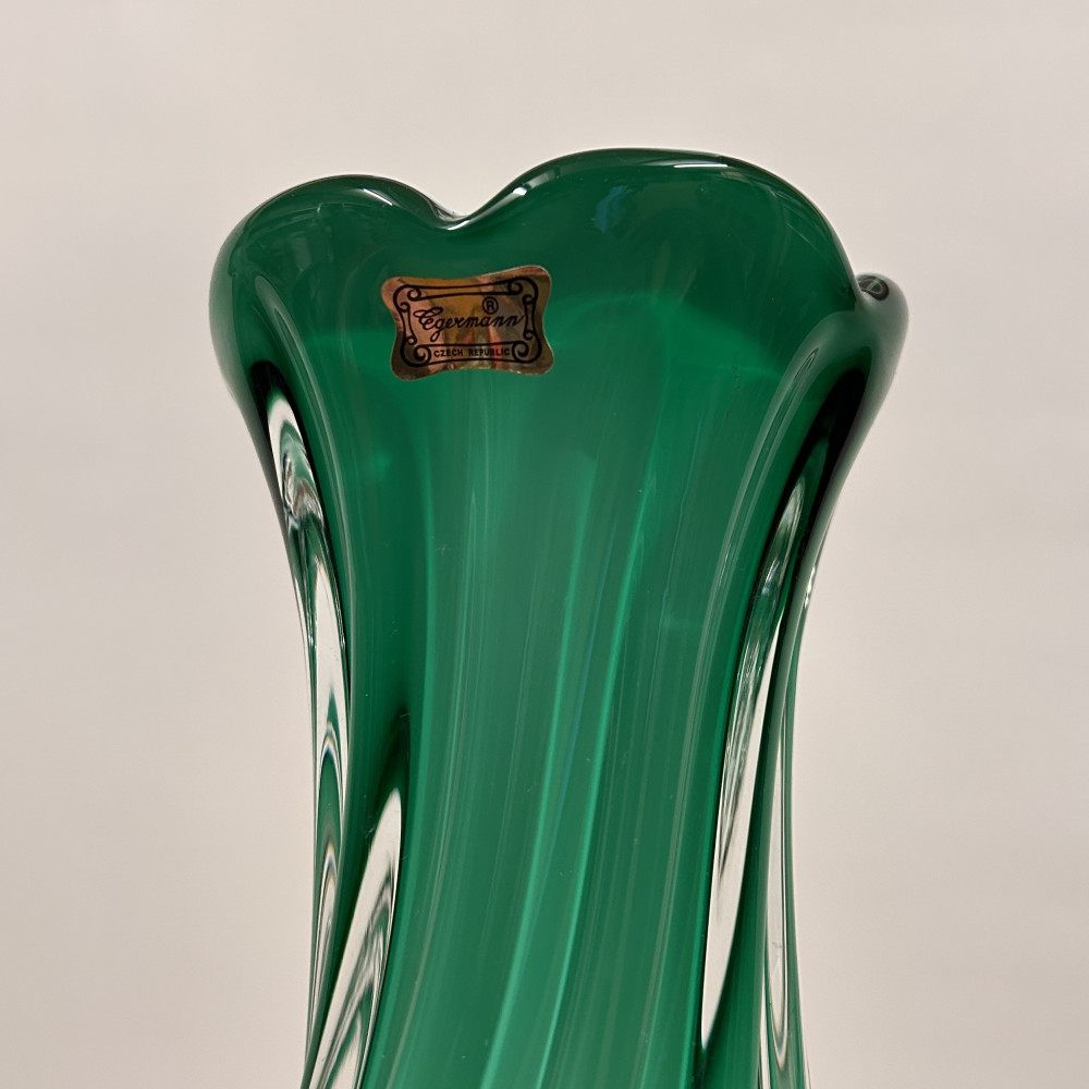Starožitná váza, která je produktem sklárny Egermann. Vyrobena z hutního skla, ručně tvarovaná a vrstvená (technika sommerso). Vyznačuje se kombinací sytě zeleného skla uvnitř a bílého opálového skla na vnějším okraji, který je stočený do spirál.