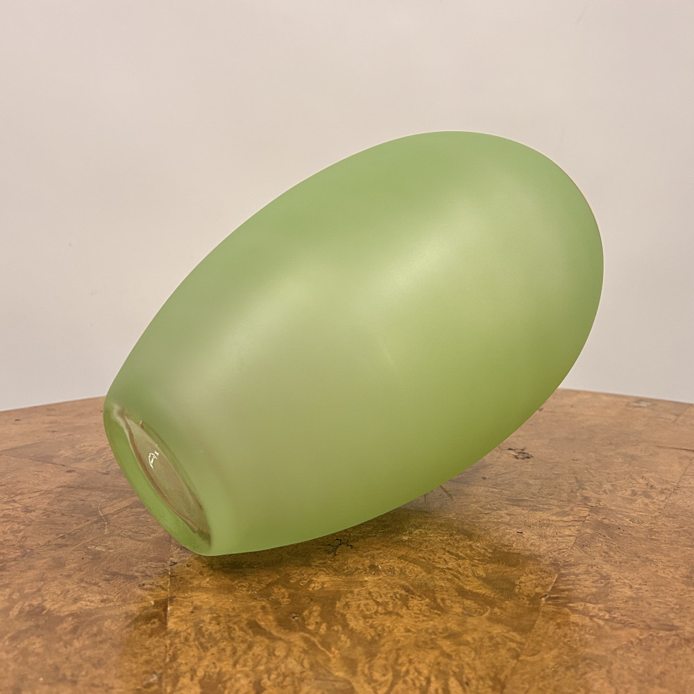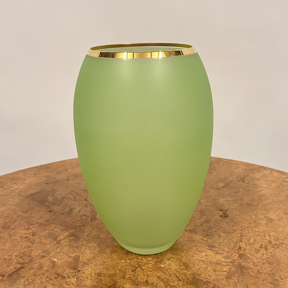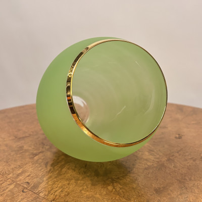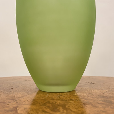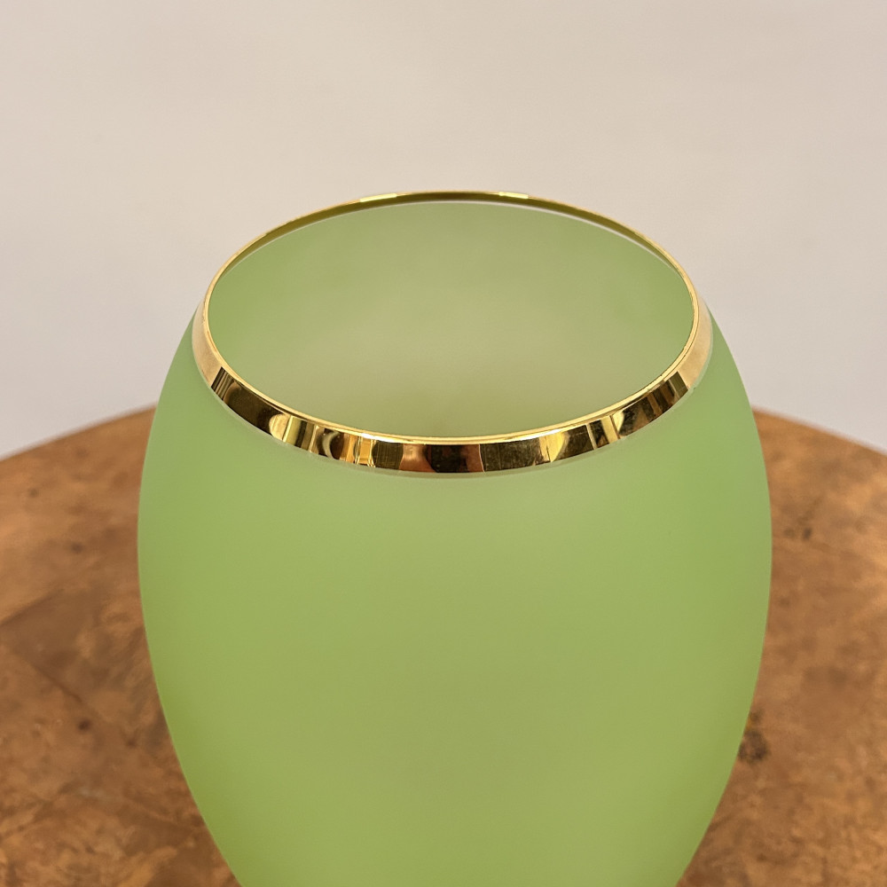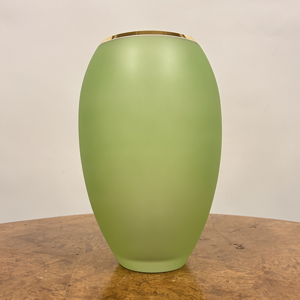 Dekorativní váza, kalich z broušeného skla– jantarový s leptaným vzorem, Egermann Nový Bor