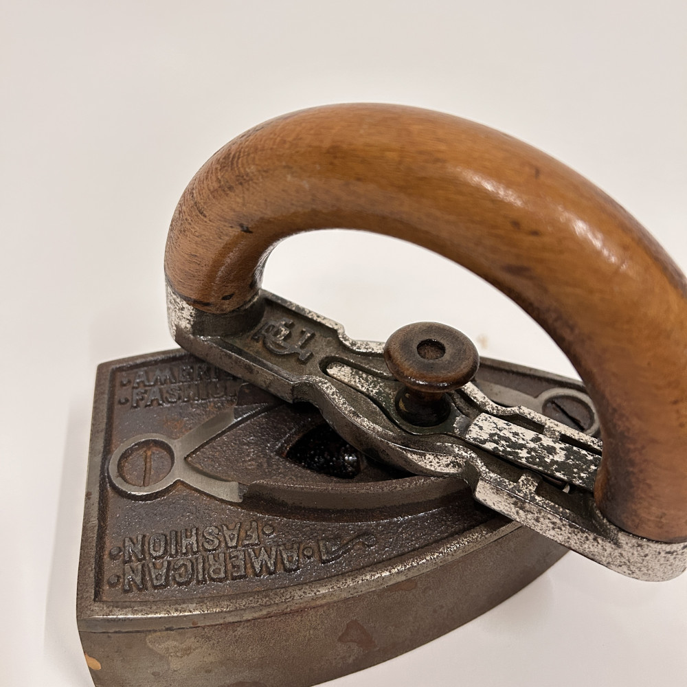 Žehlička na prádlo s nahřívacím železem, značena AMERICAN FASHION.