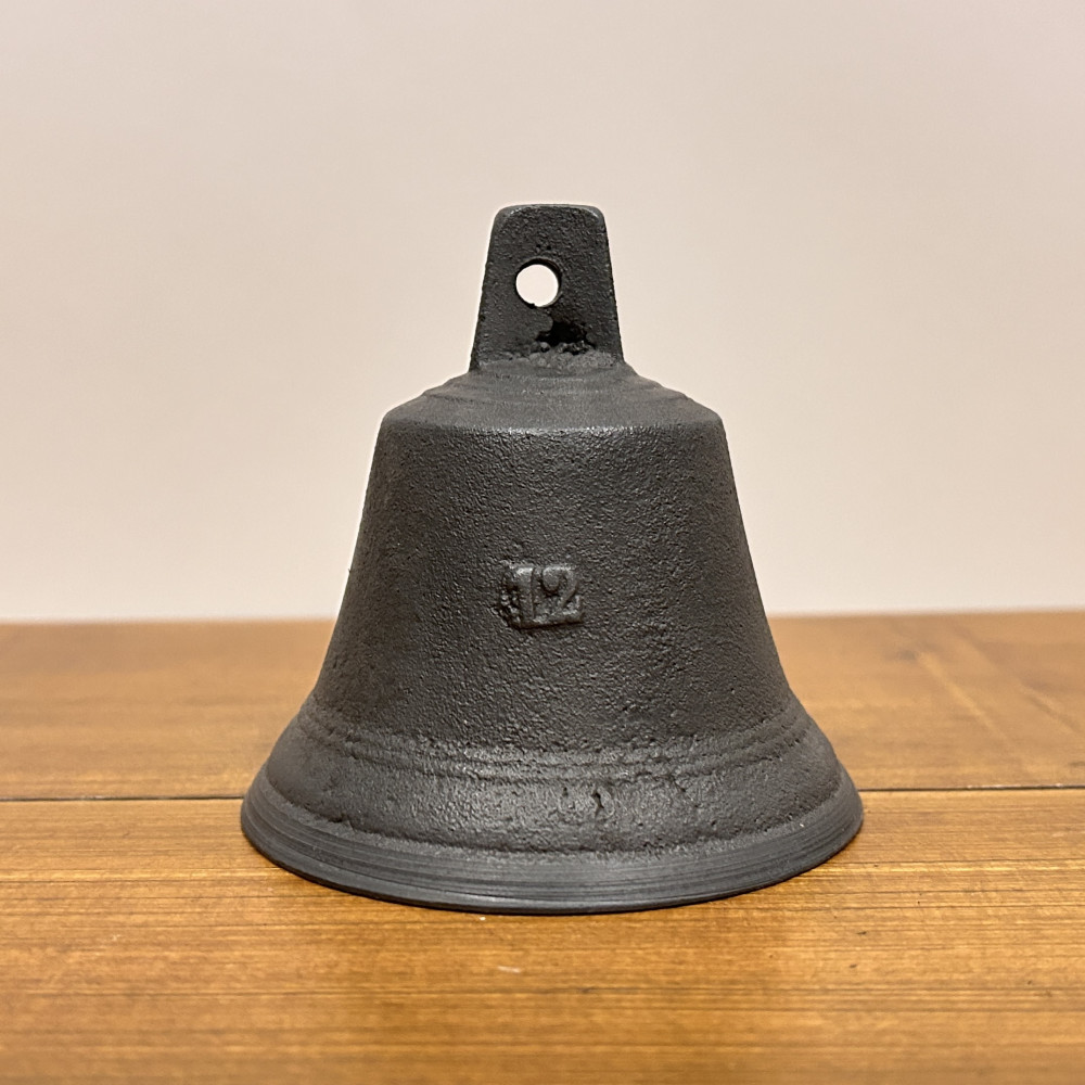 Menší závěsný zvonek s číslem 12 z kvalitního kovu.